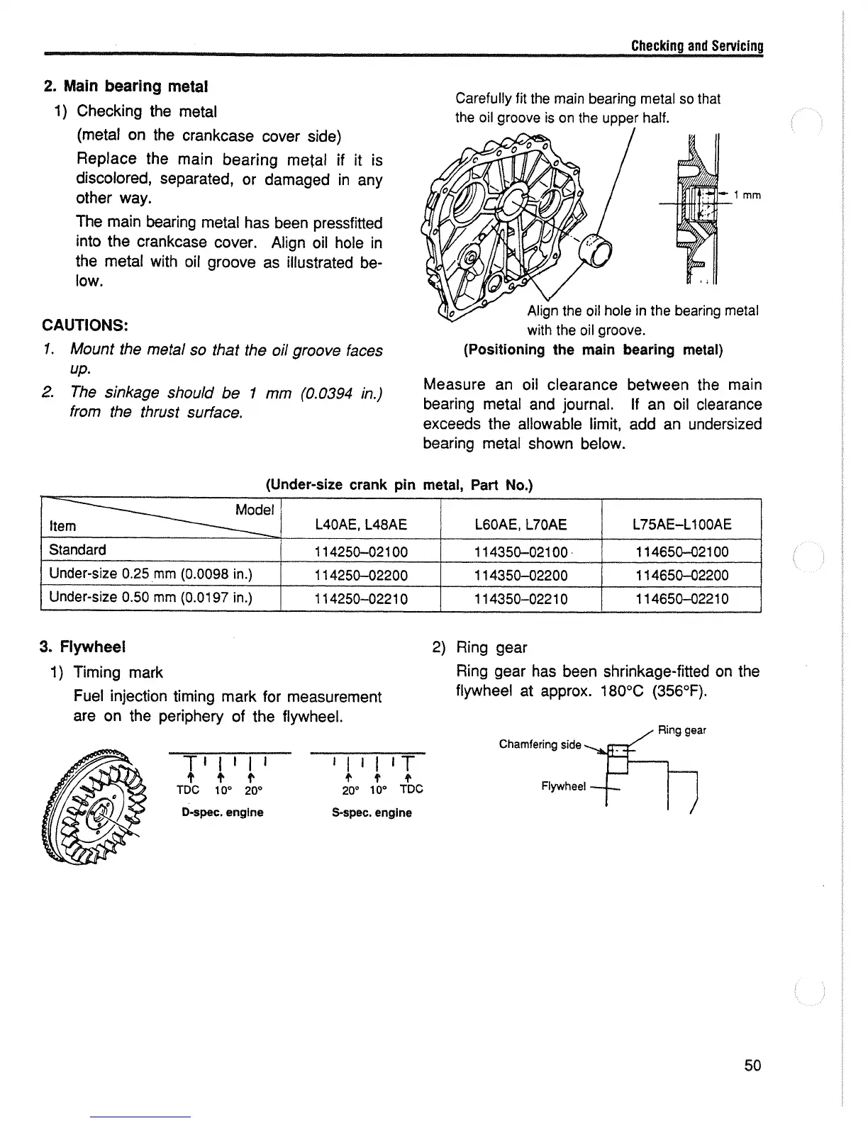 Yanmar L100AE - Main Bearing Metal Servicing; Flywheel Servicing