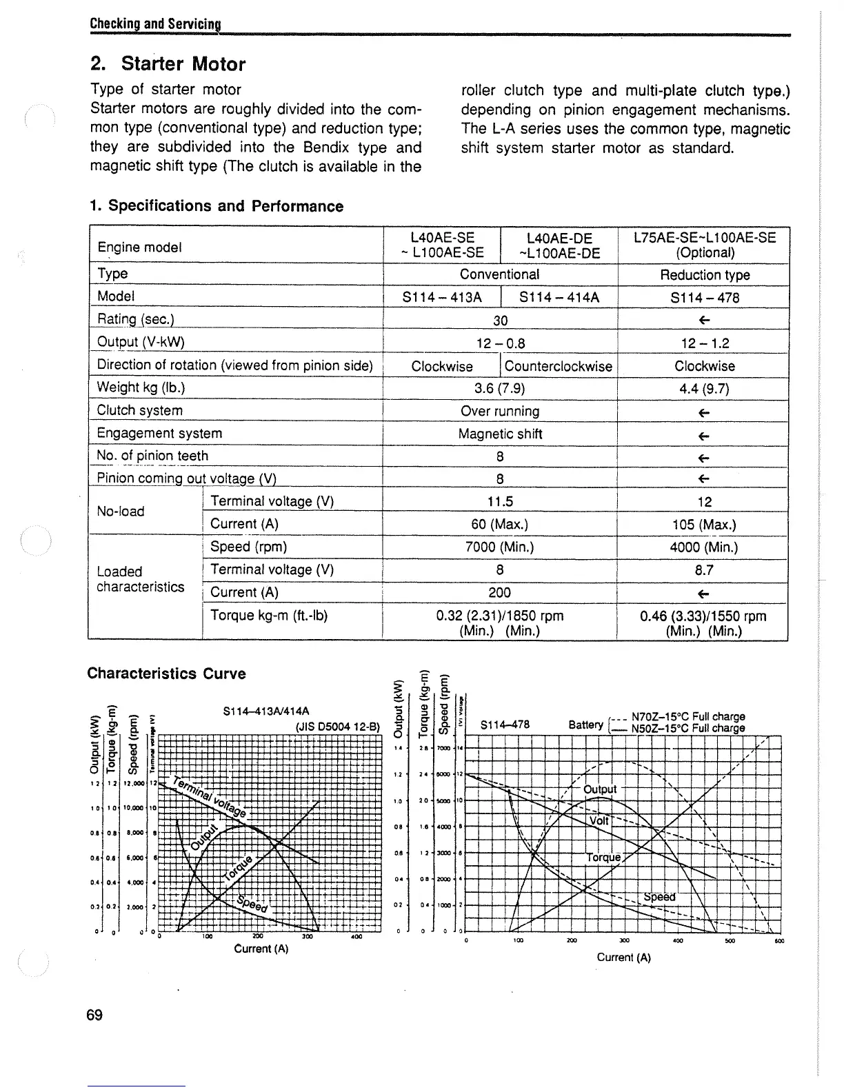Yanmar L100AE - 4.12 Electrical System Continued; Starter Motor Specifications and Performance