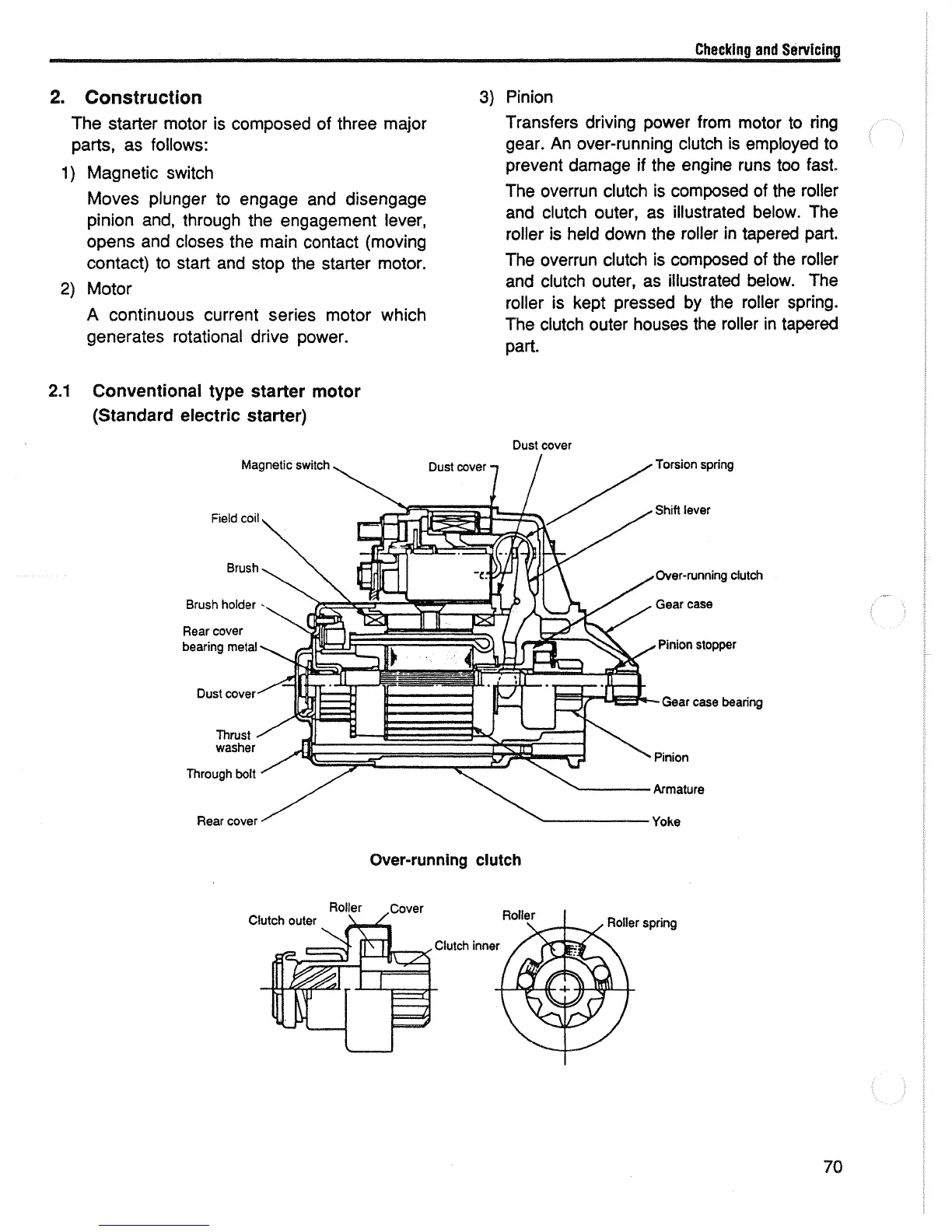 Yanmar L100AE - Starter Motor Construction; Conventional Type Sterter Motor (Standard Electric Starter) Diagram; Over-Running Clutch Diagram