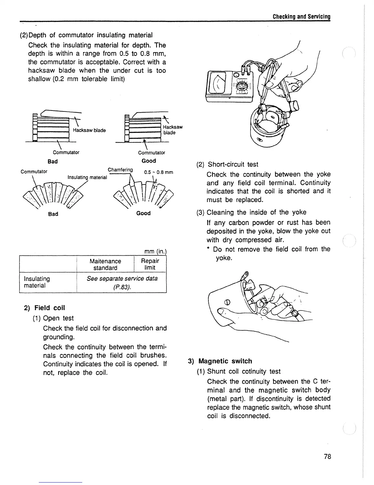 Yanmar L100AE - Field Coil Inspection; Magnetic Switch Inspection