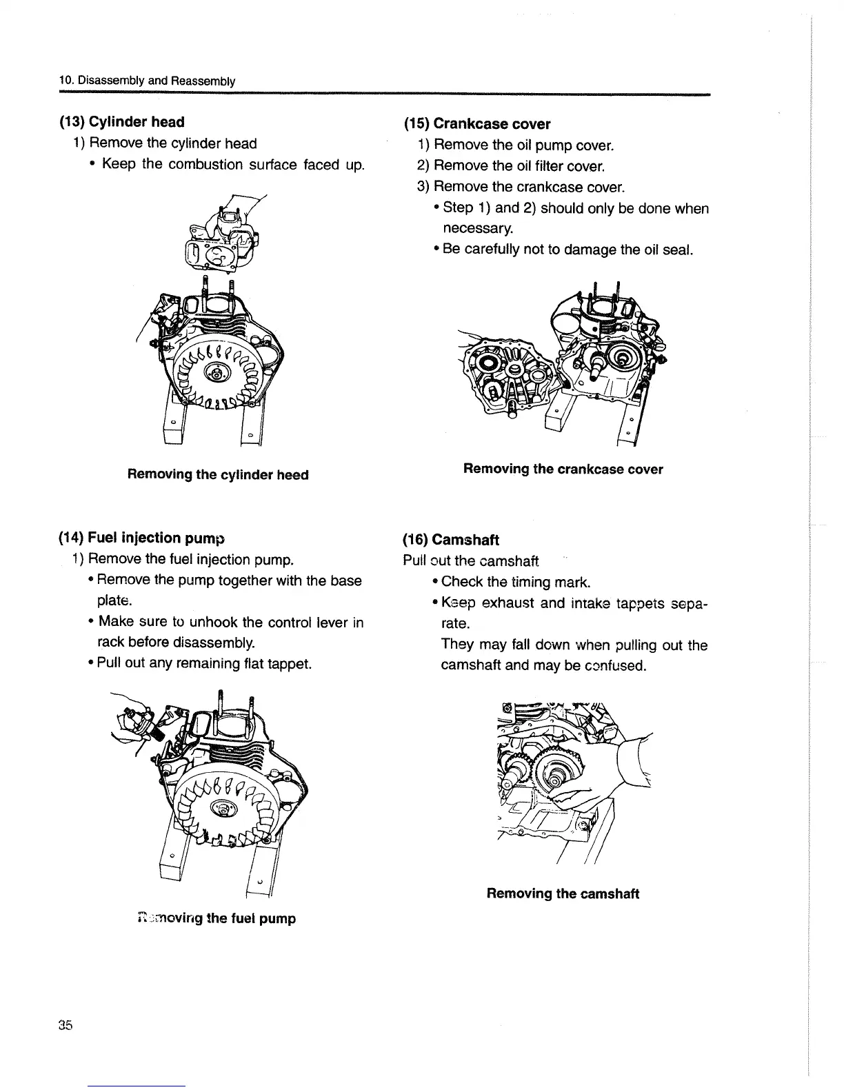 Yanmar L100EE - Cylinder Head Removal; Fuel Injection Pump Removal; Crankshaft Removal; Camshaft Removal