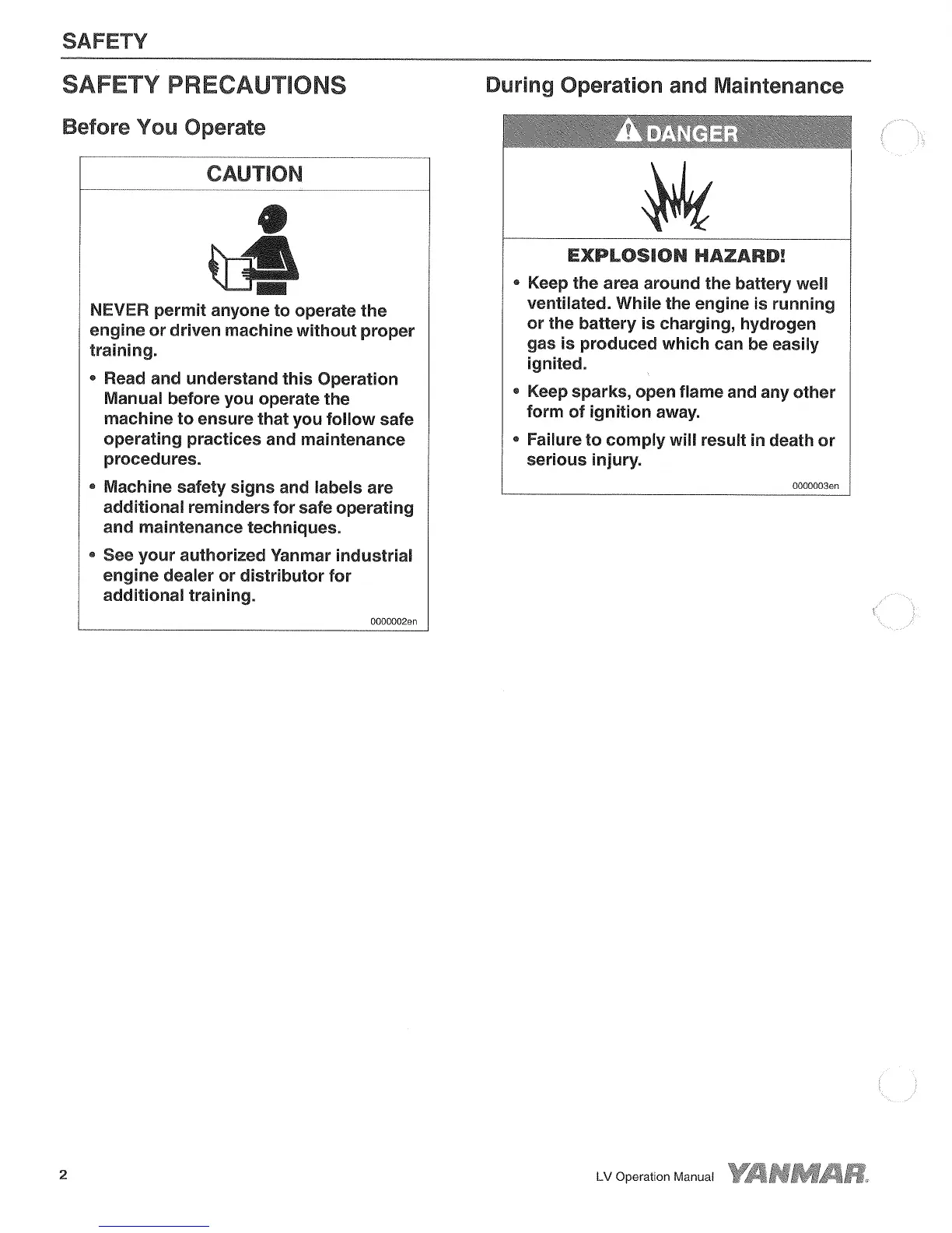 Yanmar L100V - Function of Major Engine Components; Safety Precautions