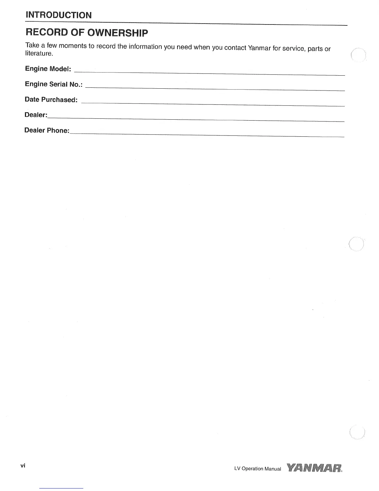 Yanmar L100V - Record of Ownership Details
