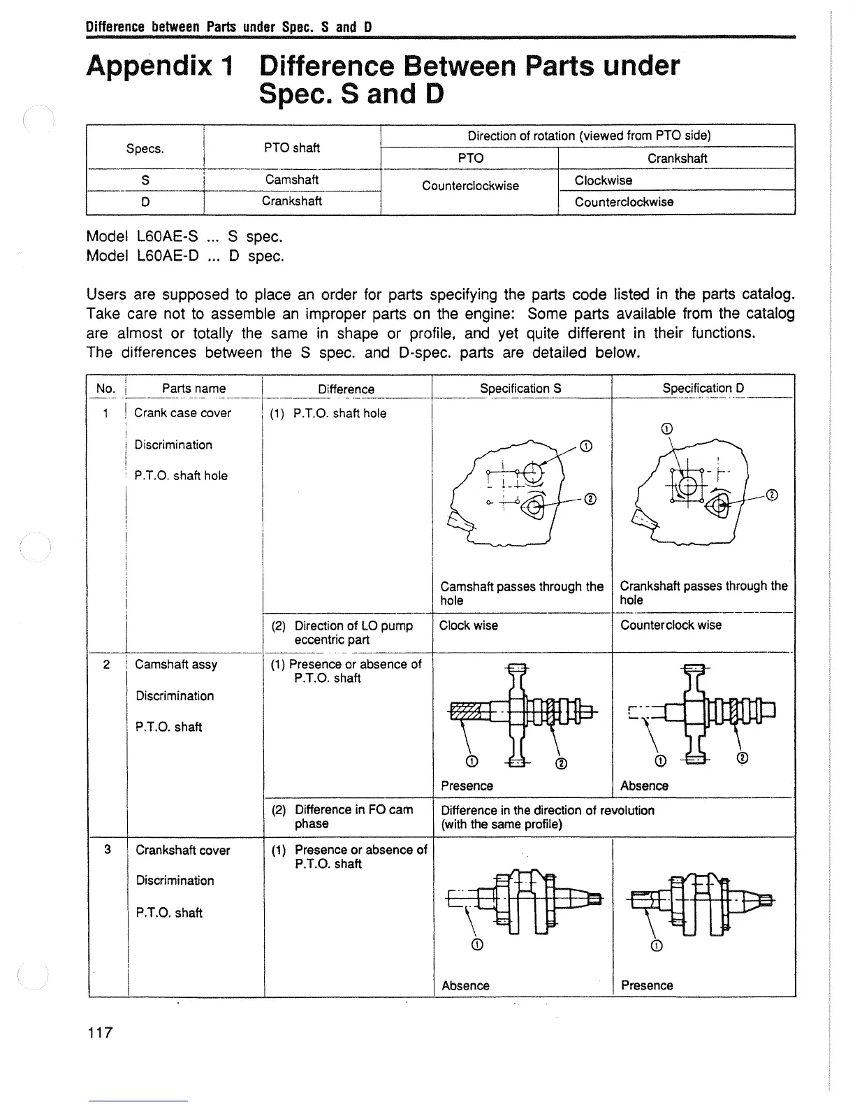 Yanmar L48AE - Difference between Parts under Spec. S and D