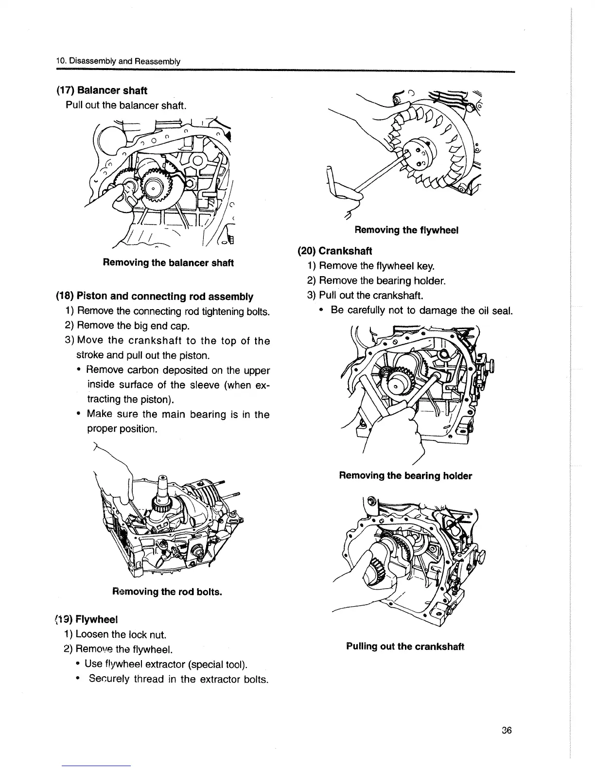 Yanmar L48EE - Balancer shaft Removal; Piston and connecting rod assembly Removal; Flywheel Removal; Crankshaft Removal