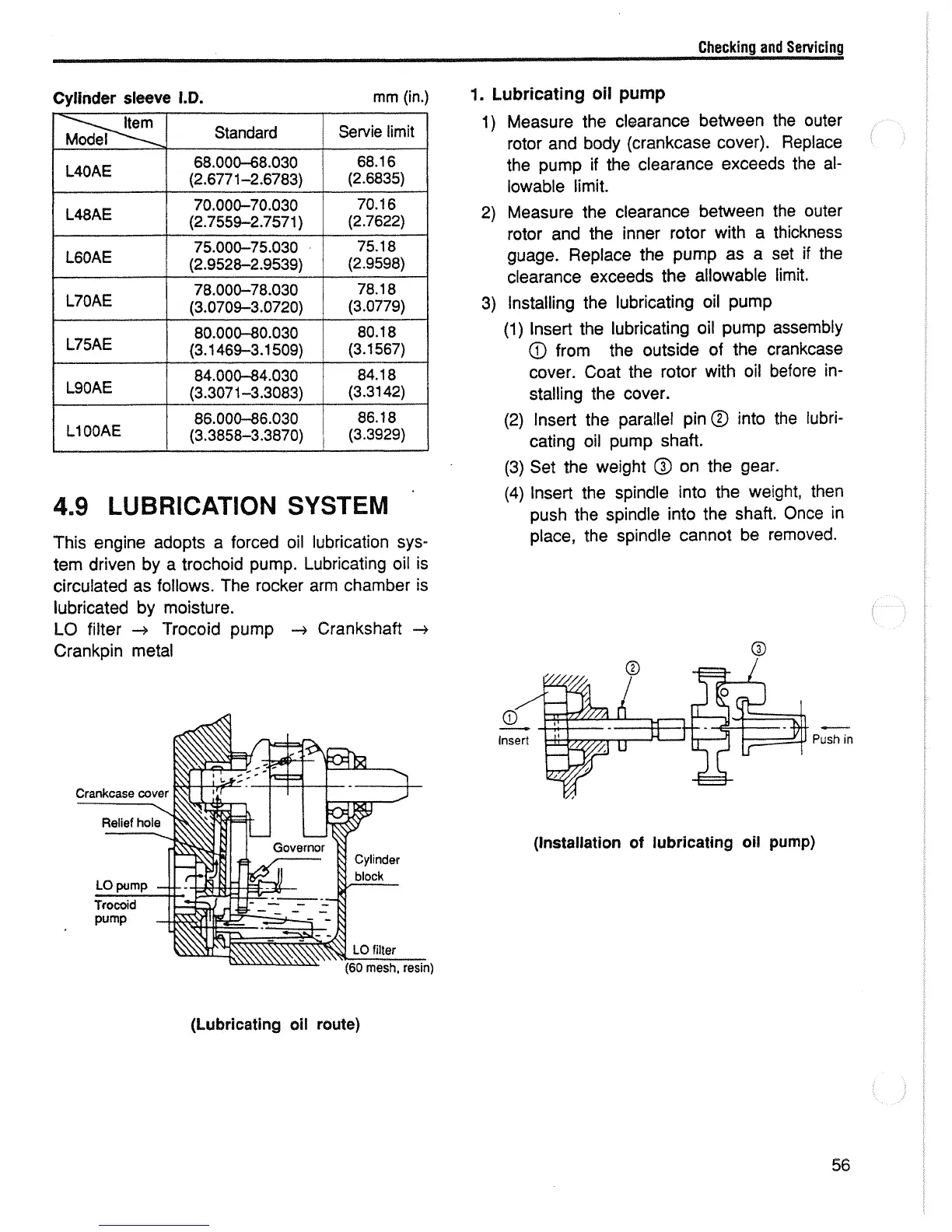 Yanmar L60AE - LUBRICATION SYSTEM; Lubricating Oil Pump
