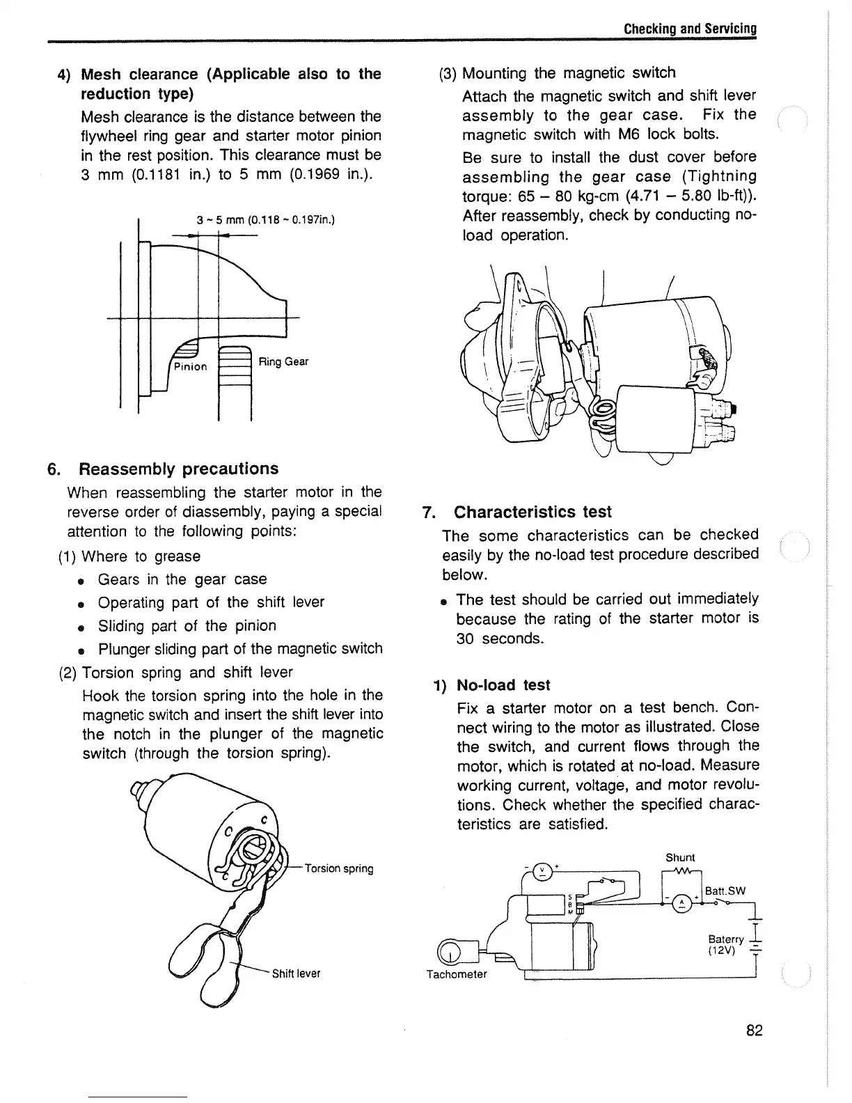 Yanmar L60AE - Reduction Type Starter Motor Reassembly Precautions; Reduction Type Starter Motor Characteristics Test