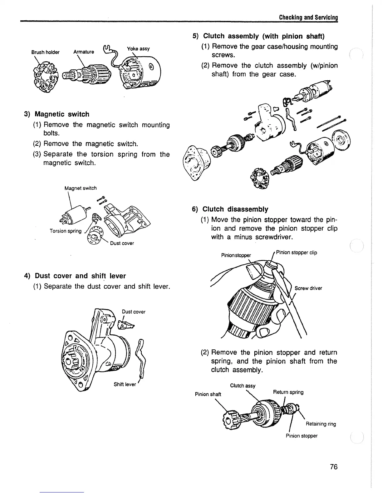 Yanmar L70AE - Magnetic Switch Removal; Dust Cover and Shift Lever Removal; Clutch Assembly;Disassembly