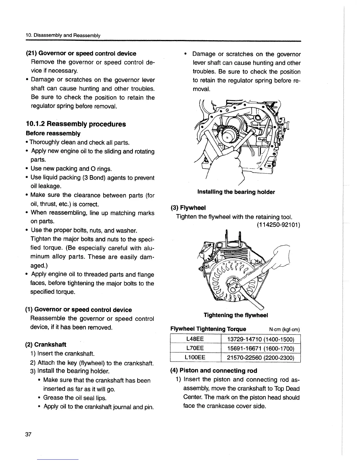 Yanmar L70EE - Reassembly Procedures