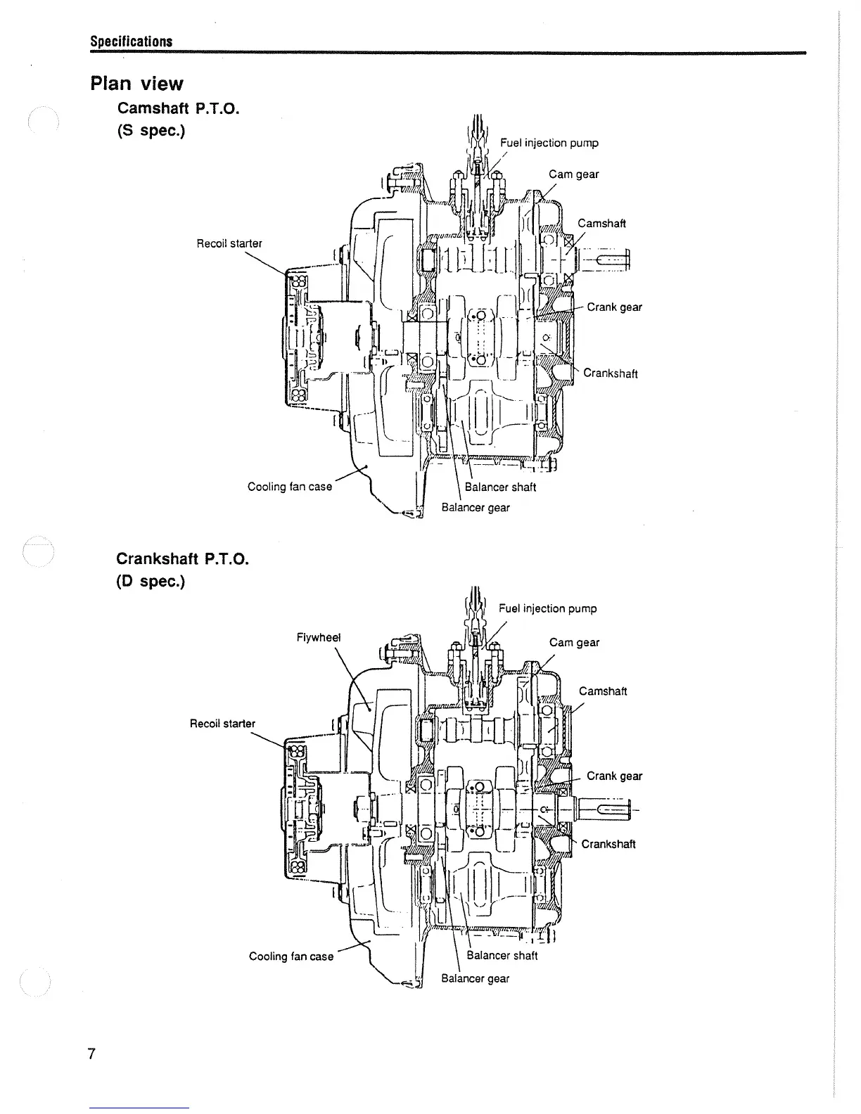 Yanmar L90AE - Camshaft PTO Plan View; Crankshaft PTO Plan View
