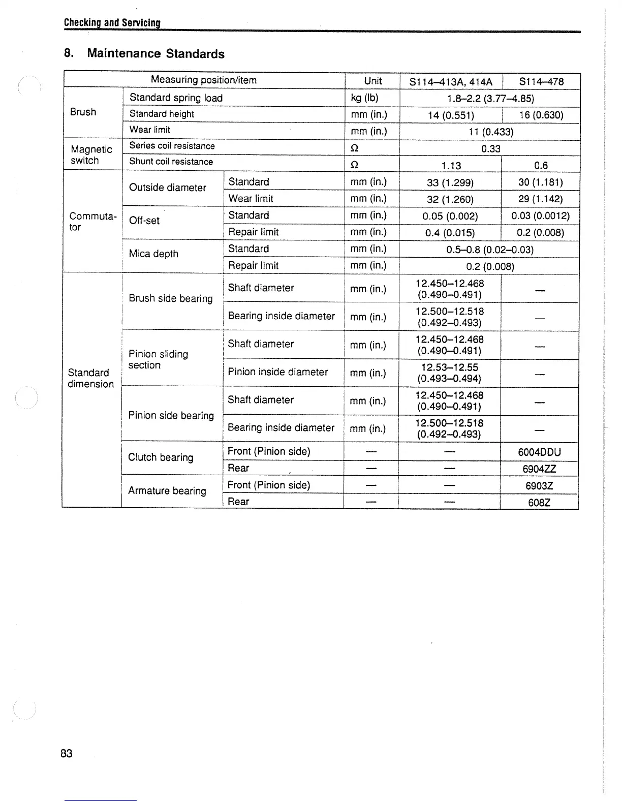 Yanmar L90AE - Reduction Type Starter Motor Maintenance Standards