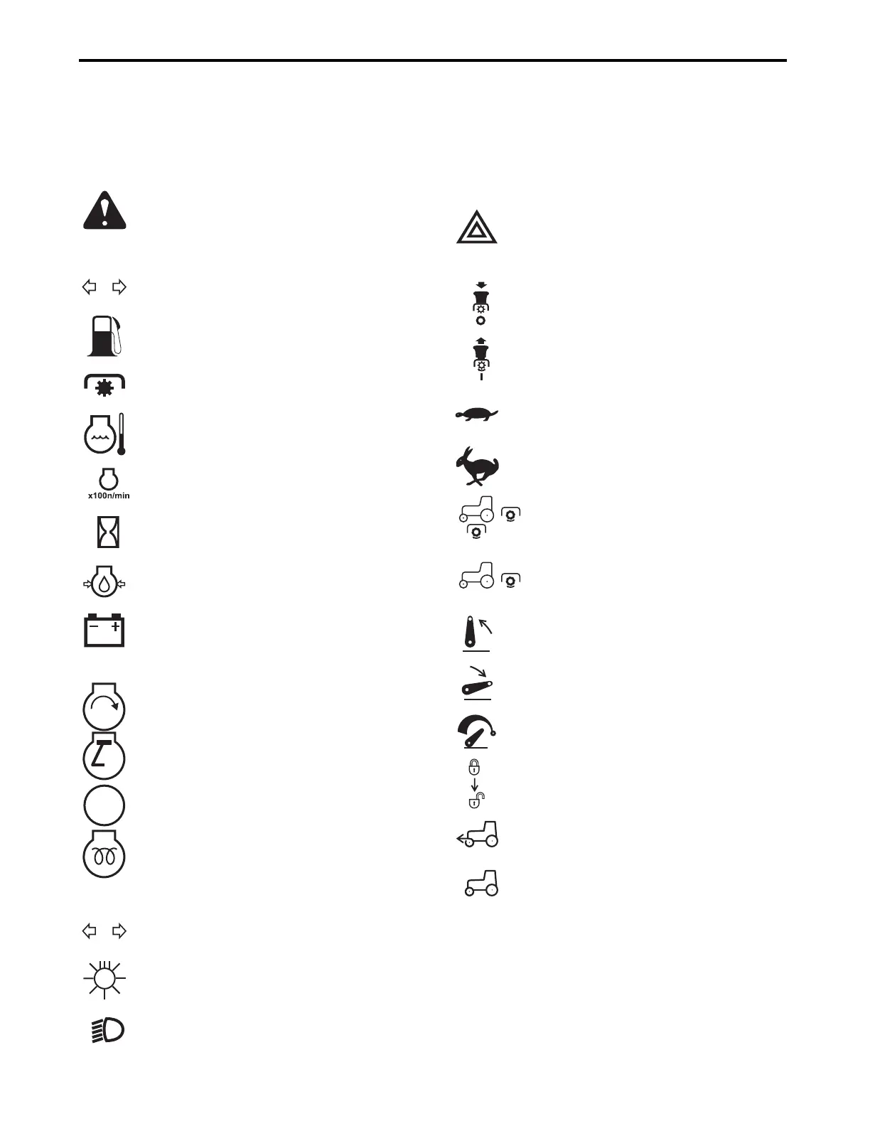 To help assist the operator in operating the tractor, various easy-to-understand pictographs have been