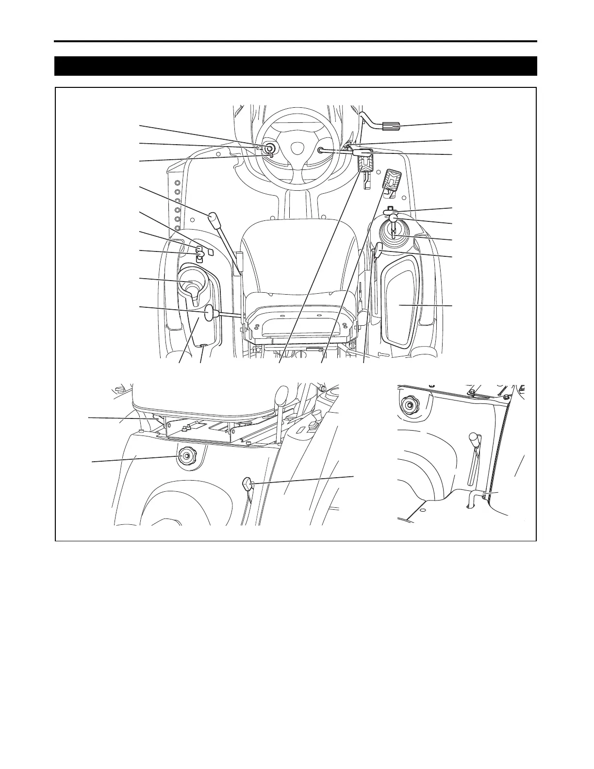 (14) Mid-/Rear Power Take Off (PTO) select lever