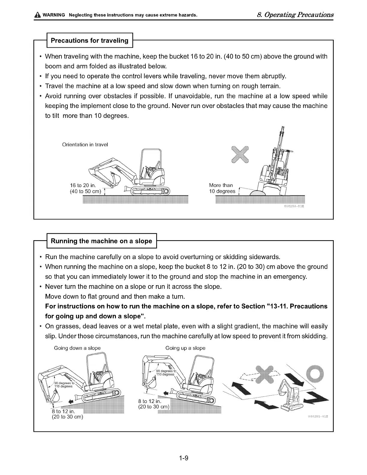 Yanmar ViO 27-5 - Precautions for Traveling; Running the Machine on a Slope
