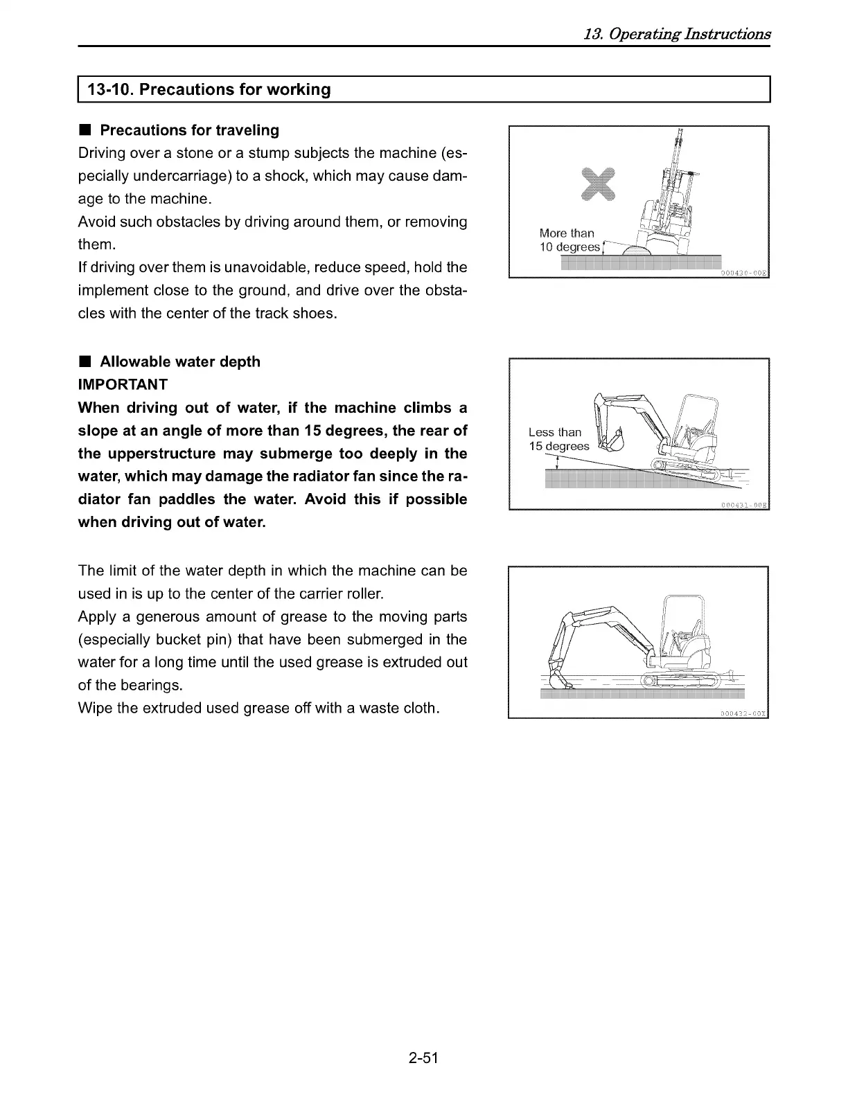 Yanmar ViO 27-5 - Precautions for Working; Allowable Water Depth
