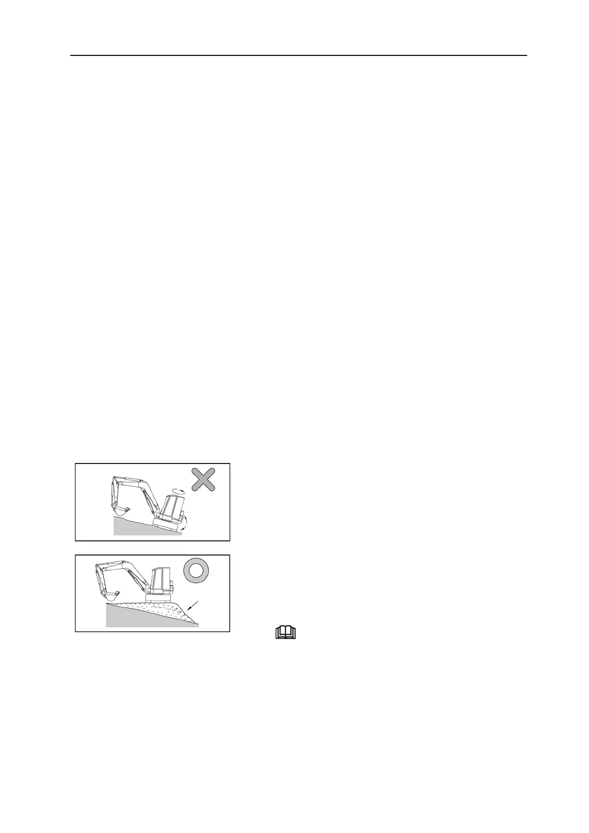• Do not pivot the upper structure with a load in the