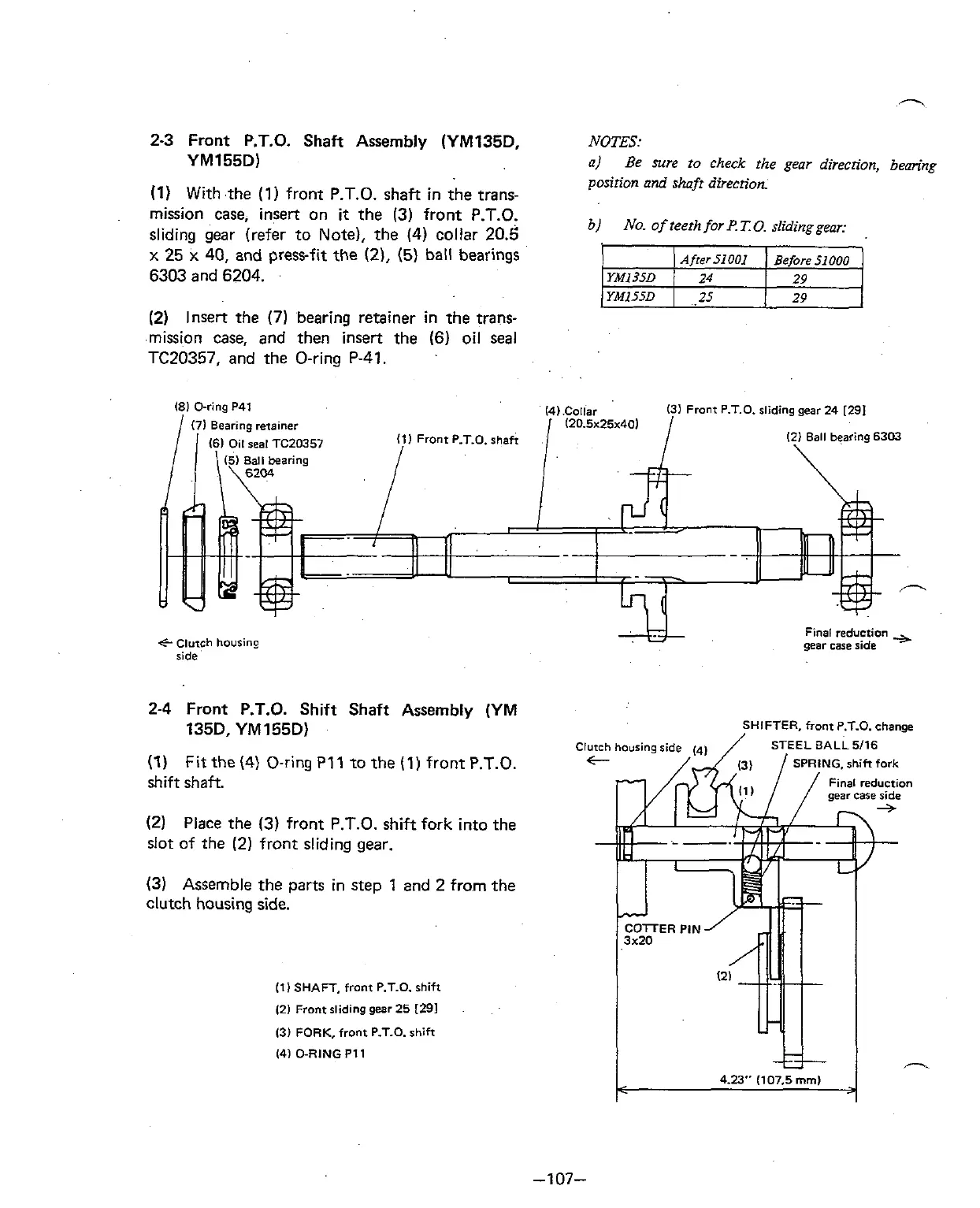 2-3 Front P.T.O. Shaft Assembly (YM135D.