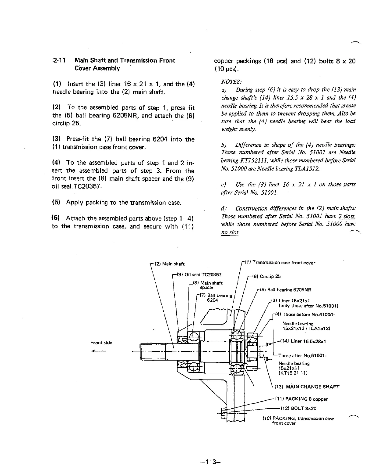 needle bearing into the (2) main shaft.