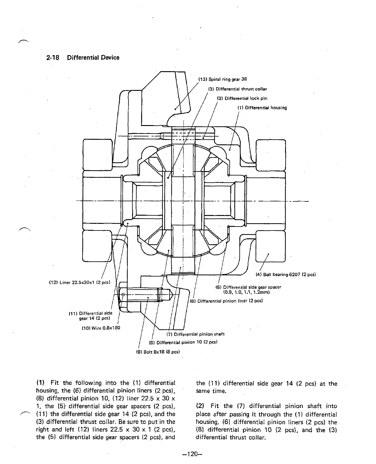 differential side gear spacers (2 pcs), and differential thrust collar.