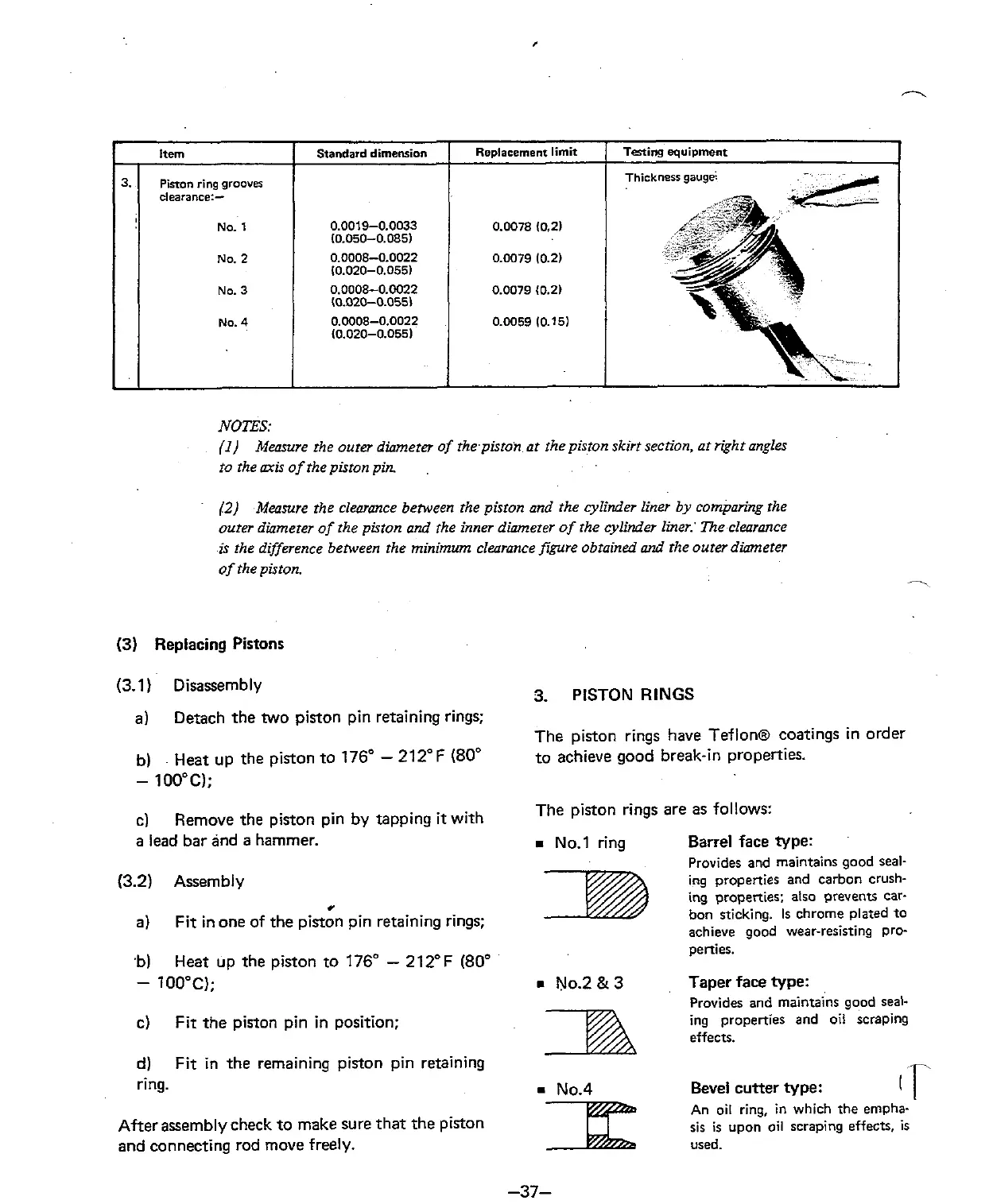 Mensure the clearance between the piston and the cylinder liner by comparing the