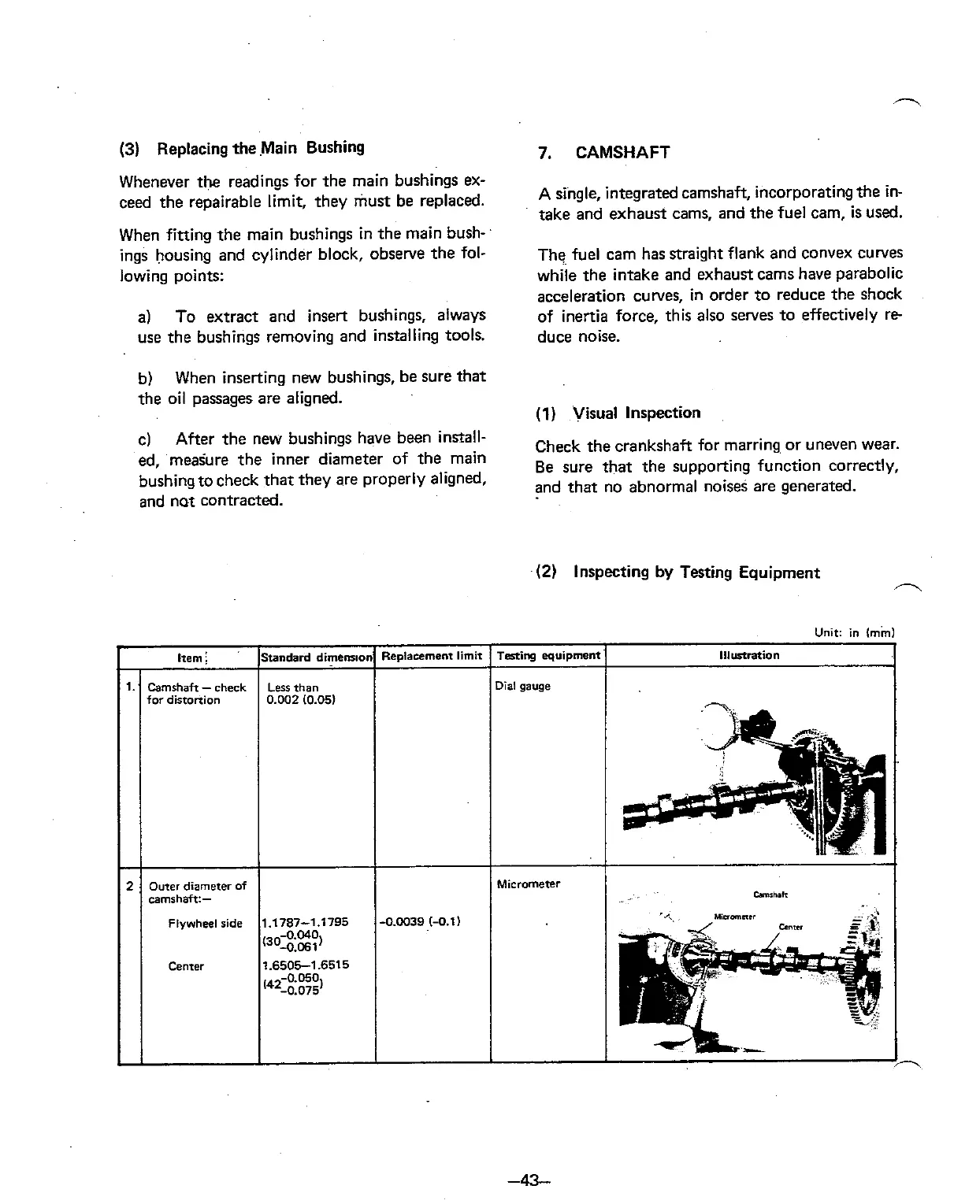 Check the crankshaft for marring or uneven wear.