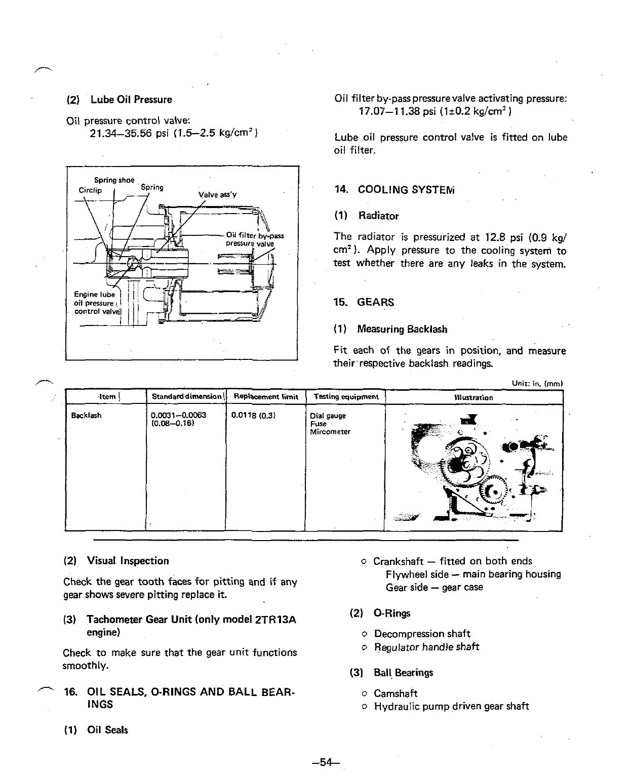 16. OIL SEALS, O-RINGS AND BALL BEAR-
