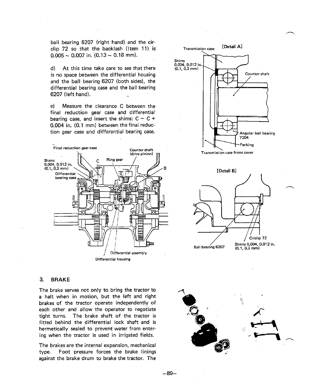 tight turns. The brake shaft of the tractor