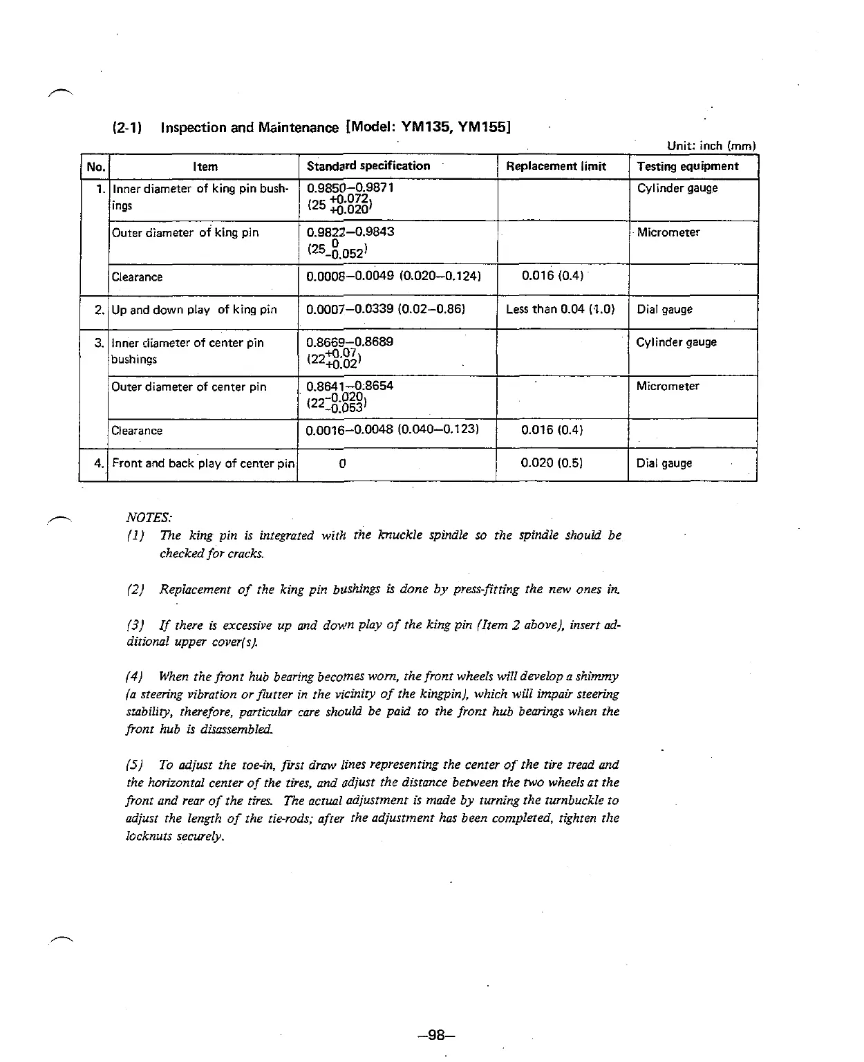 Inspection and Msintenance [Model: YM135, YM 1551