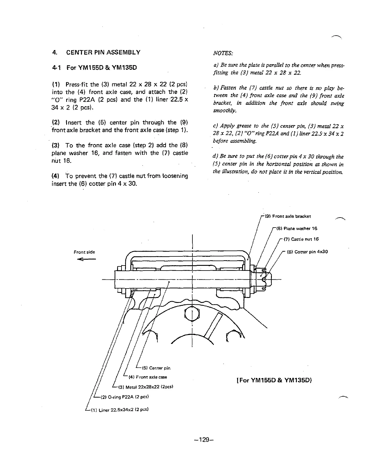 c) Apply grease to the (5) cenrer pin, (3) metal 22
