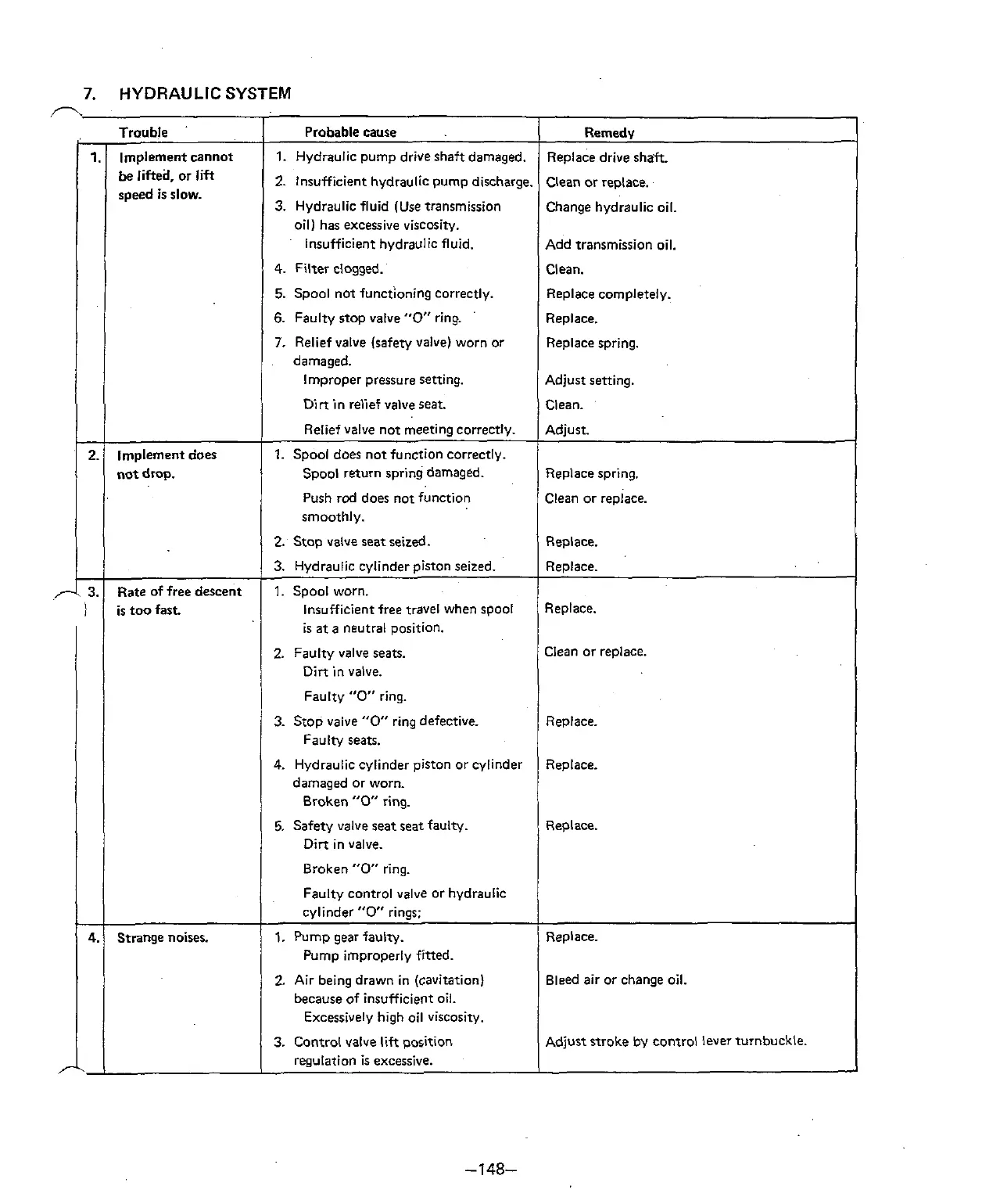 lnsufficient hydraulic pump discharge.