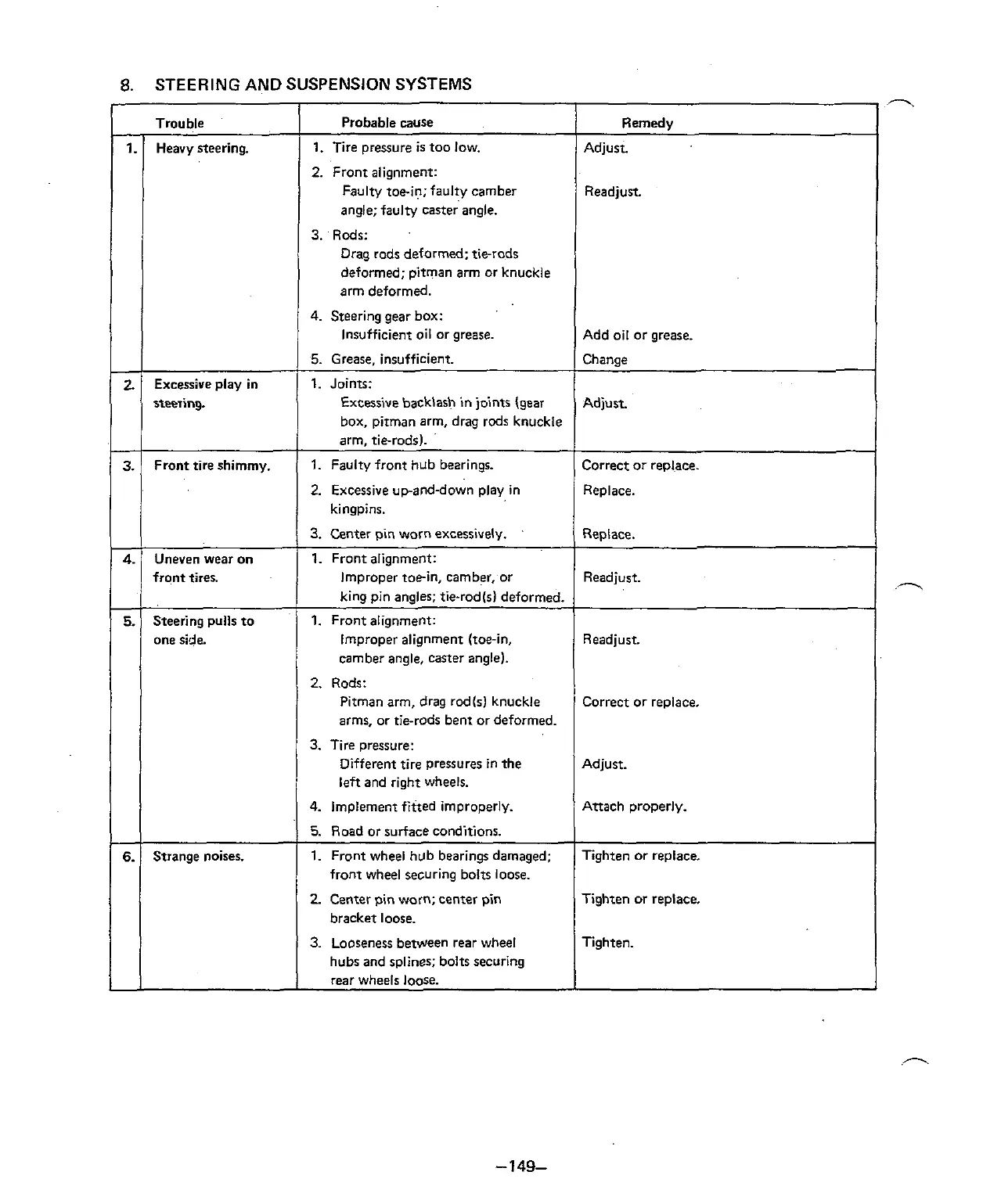 arms, or tie-rods bent or deformed.