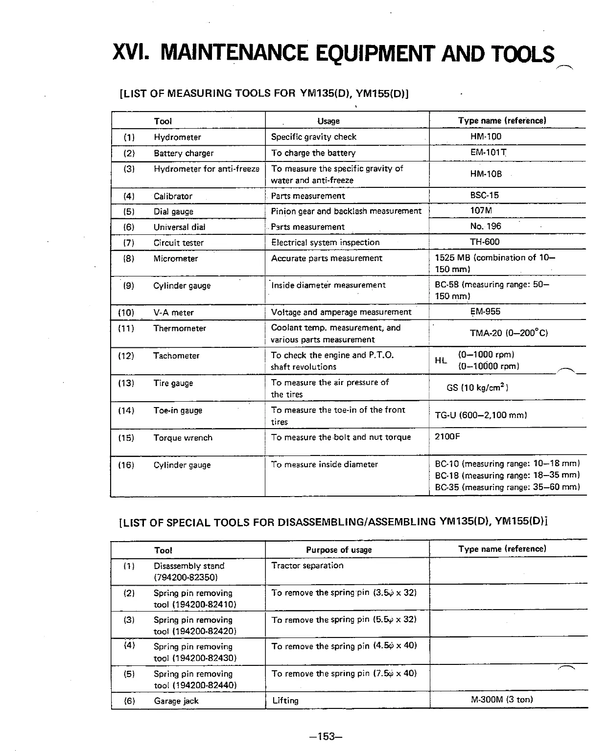 [LIST OF MEASURING TOOLS FOR YM135(D), YM155(D)]