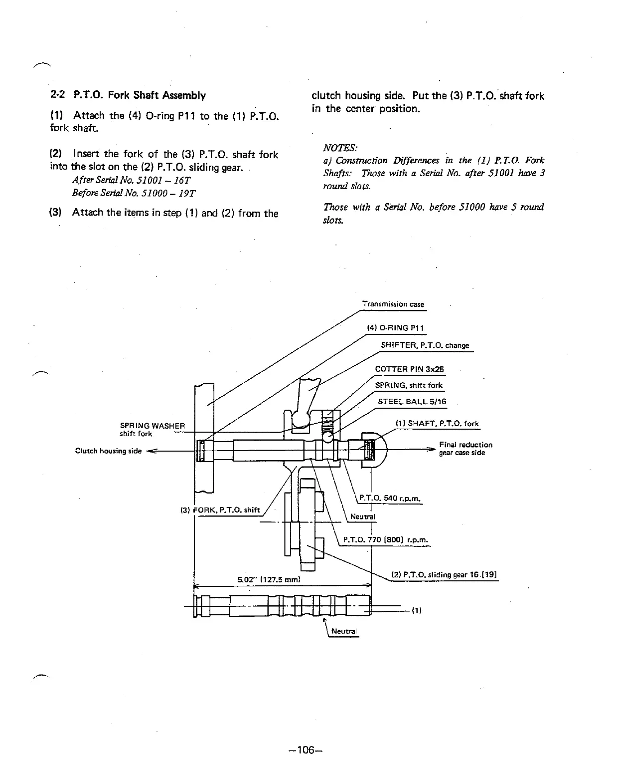 Assembly clutch housing side. Put the (3) P.T.O. shaft fork