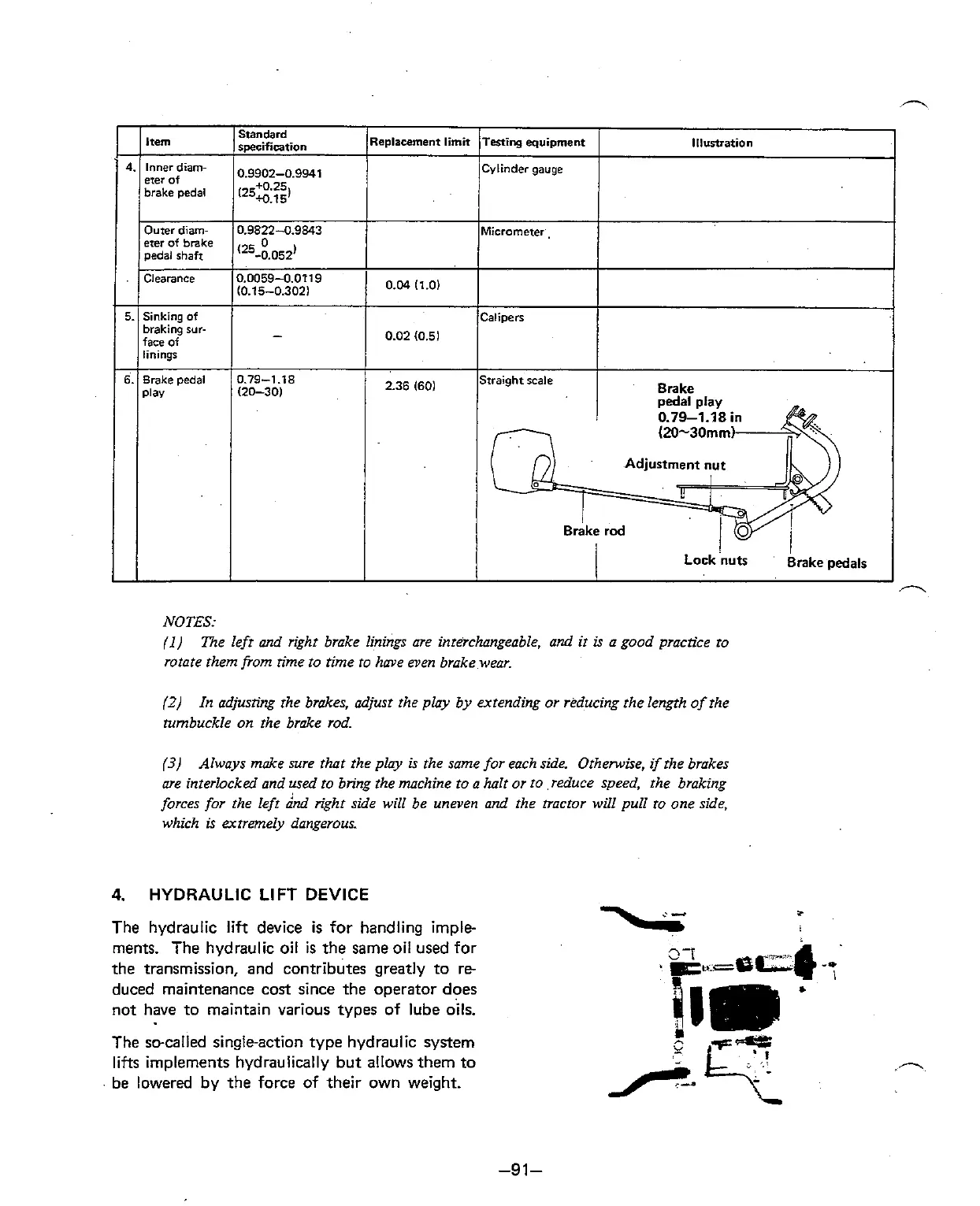 In adjusting the brakes, adjust the play by extending or reducing the length of the