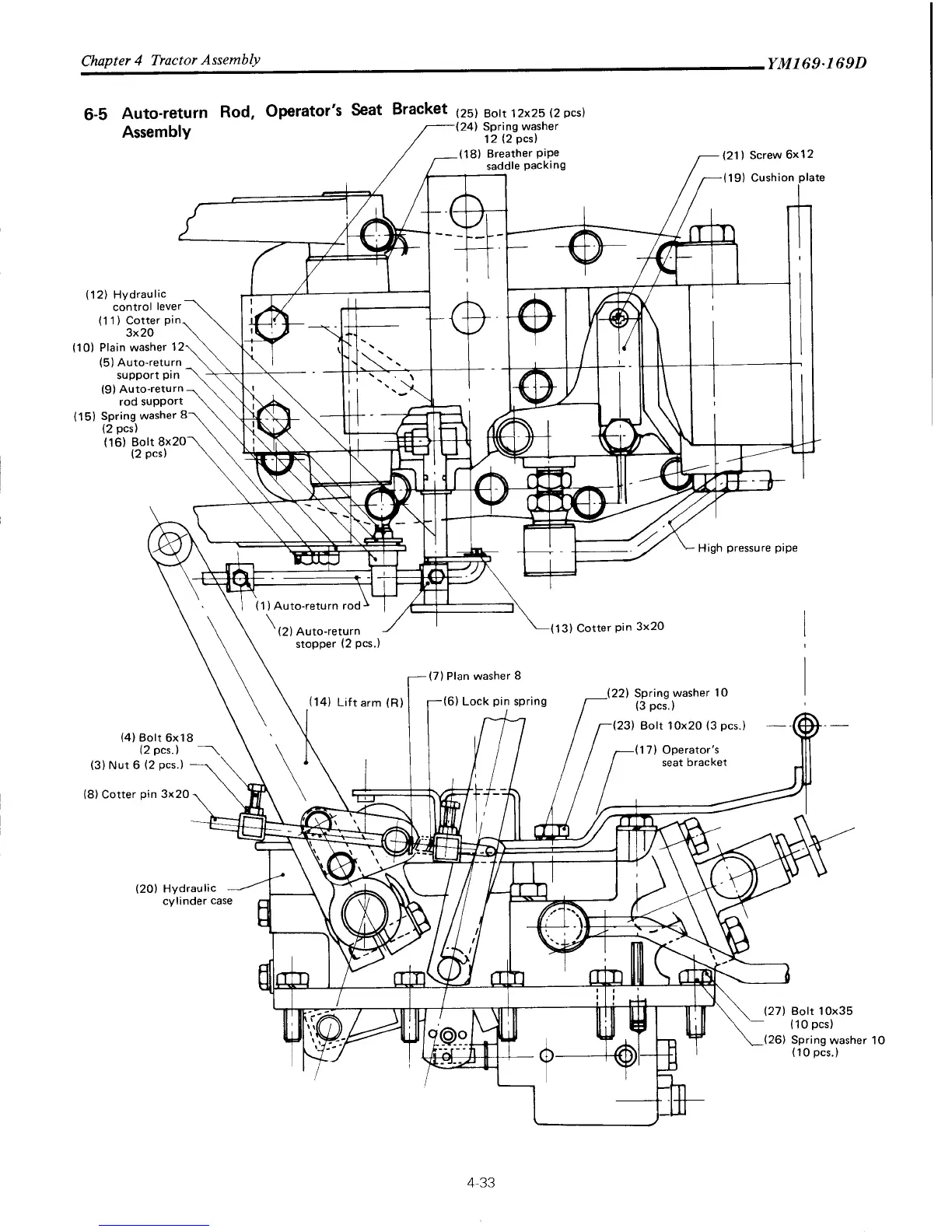 Yanmar YM169 - Auto-Return Rod, Operators Seat Bracket Assembly