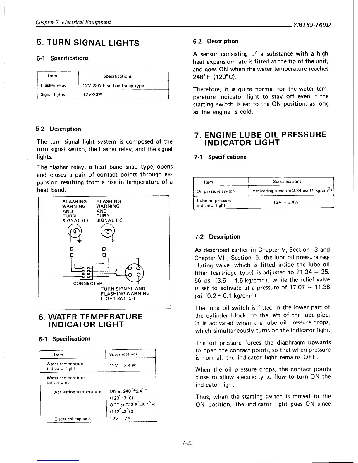 Yanmar YM169 - Turn Signal Lights; Water Temperature Indicator Light; Engine Lube Oil Pressure Indicator Light