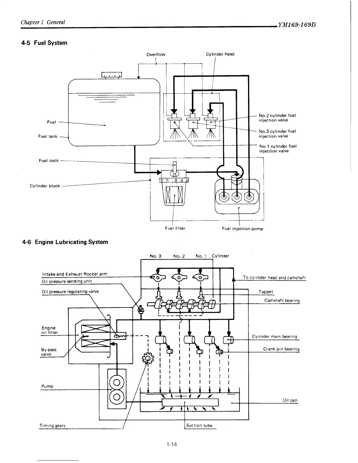 Yanmar YM169 - Fuel System Diagram; Engine Lubricating System Diagram