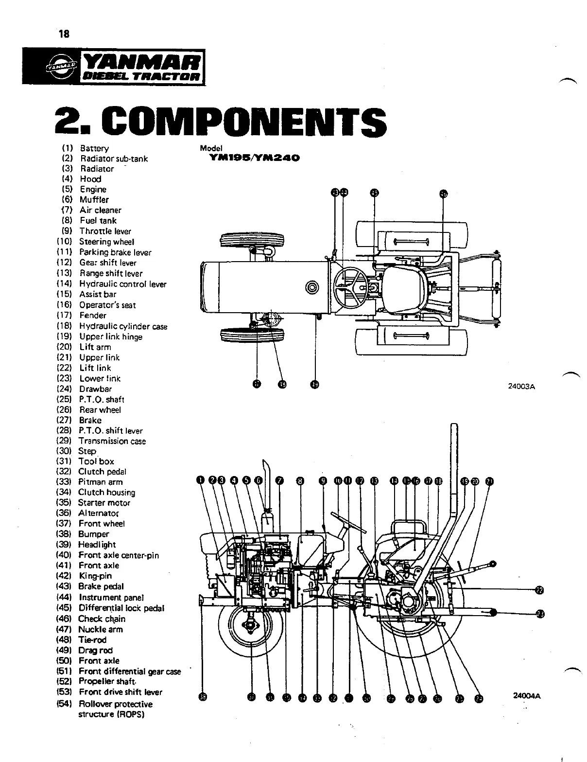 Yanmar YM195 - Components; Tractor Component Identification