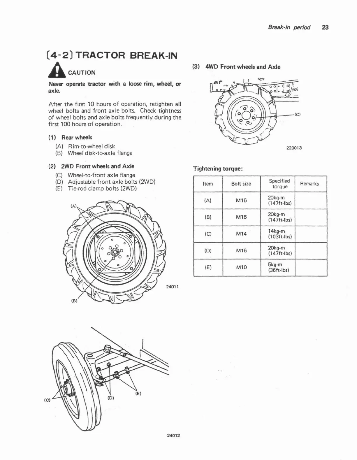 wheel bolts and front axle bolts. Check tightness
