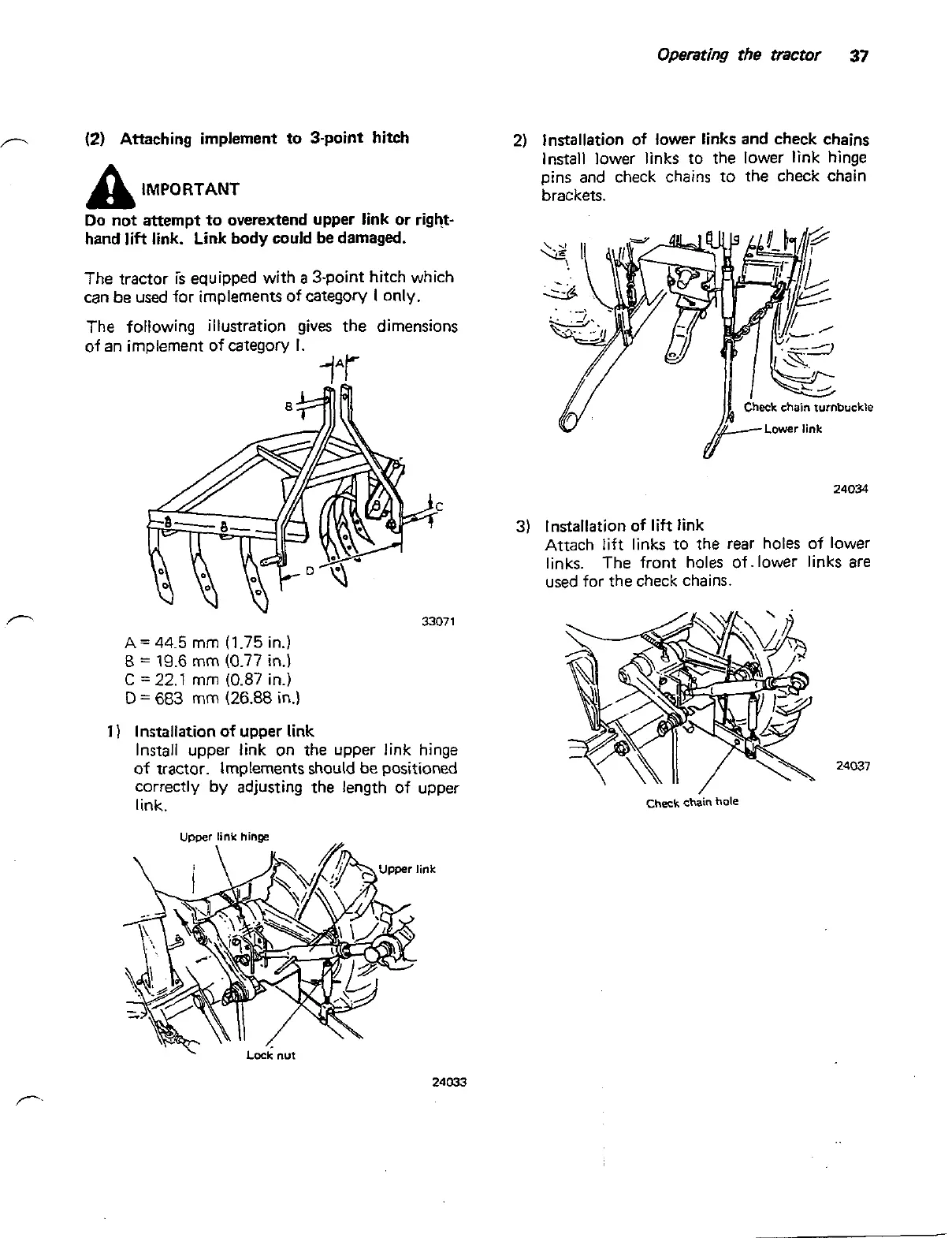 lnstallation of lower links and check chains