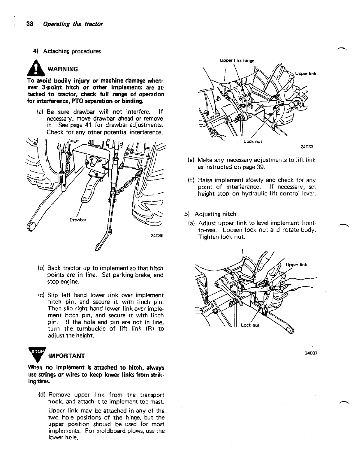 Then slip right hand lower link over imple-