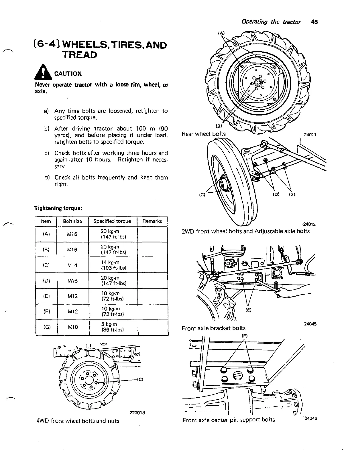 Check bolts after working three hours and