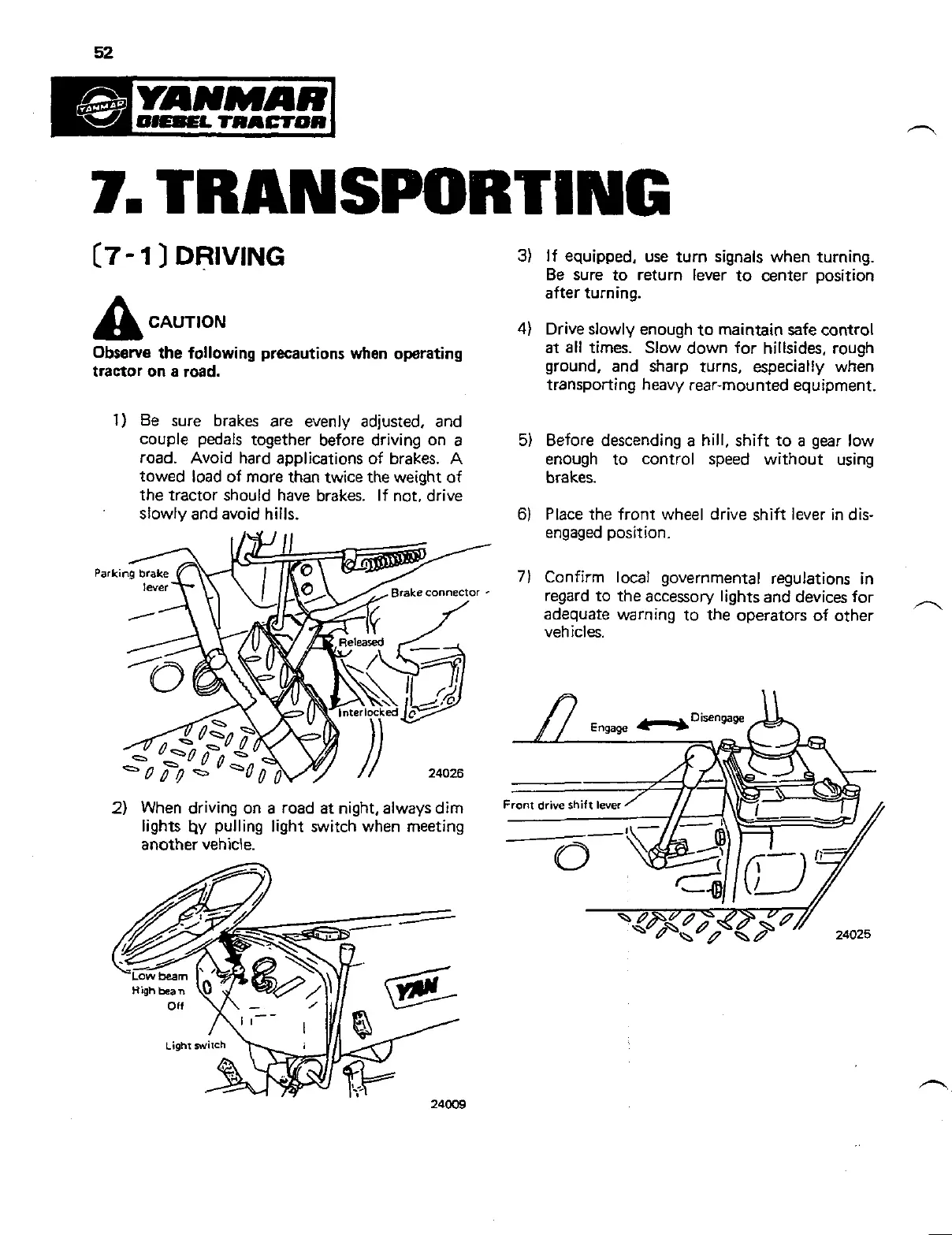 Place the front wheel drive shift lever in dis-