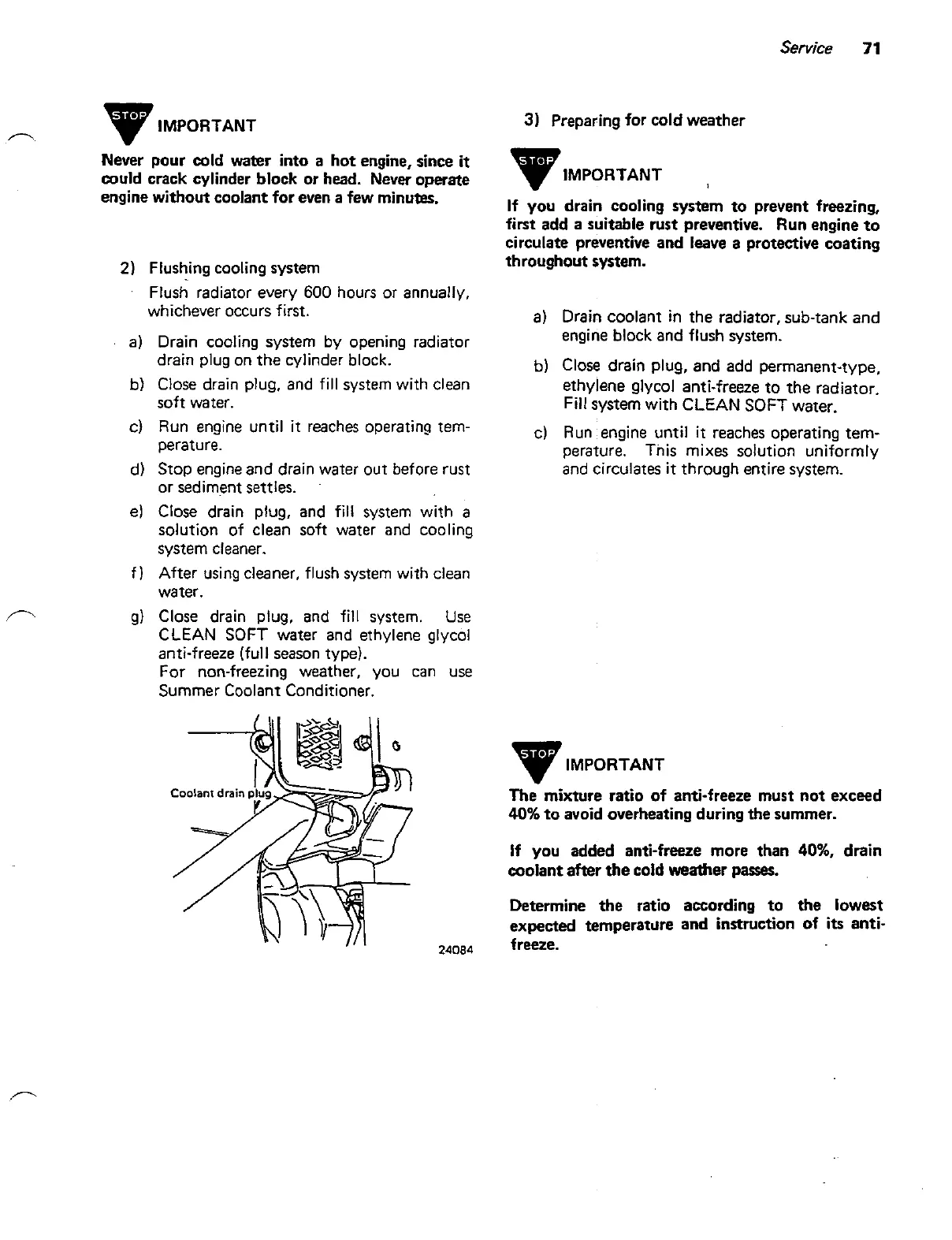 could crack cylinder block or head. Never operate