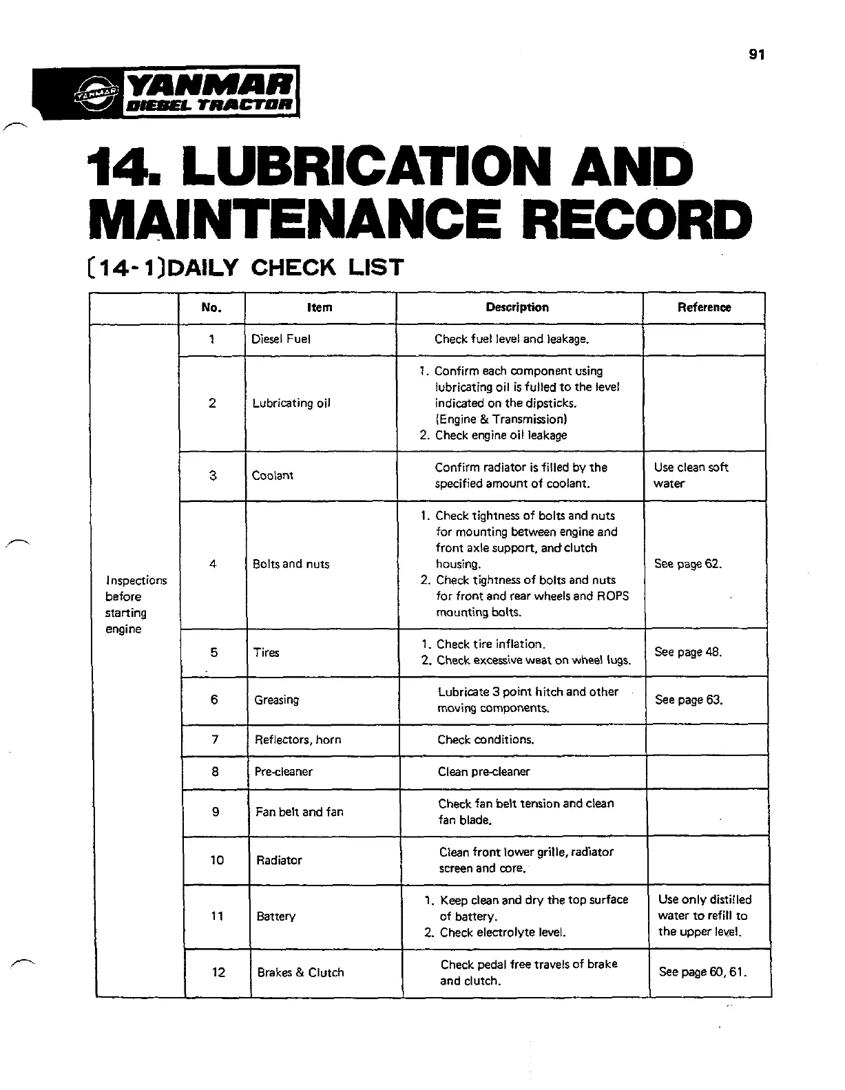 for front and rear wheels and ROPS