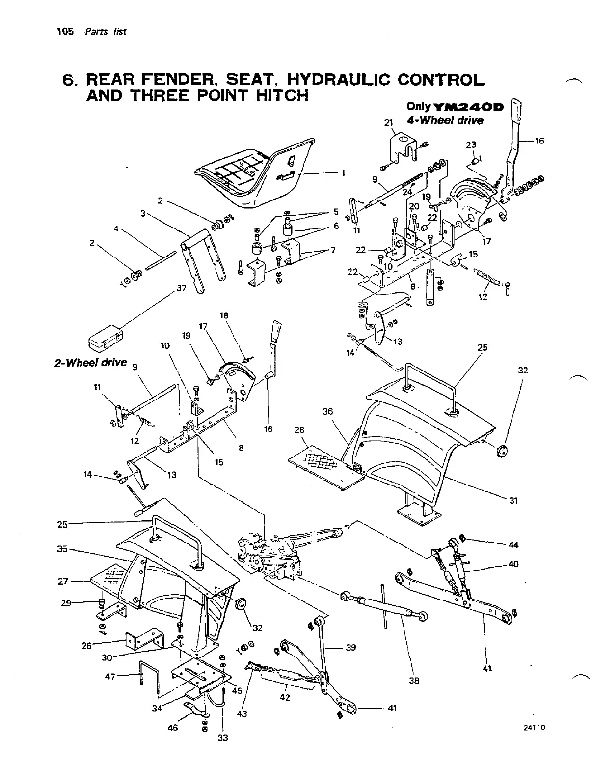 Yanmar YM240 - Rear Fender, Seat, Hydraulic Control and Three Point Hitch