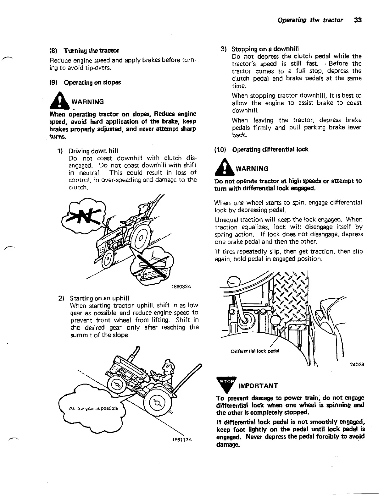 When operating tractor on slopes, Reduce engine
