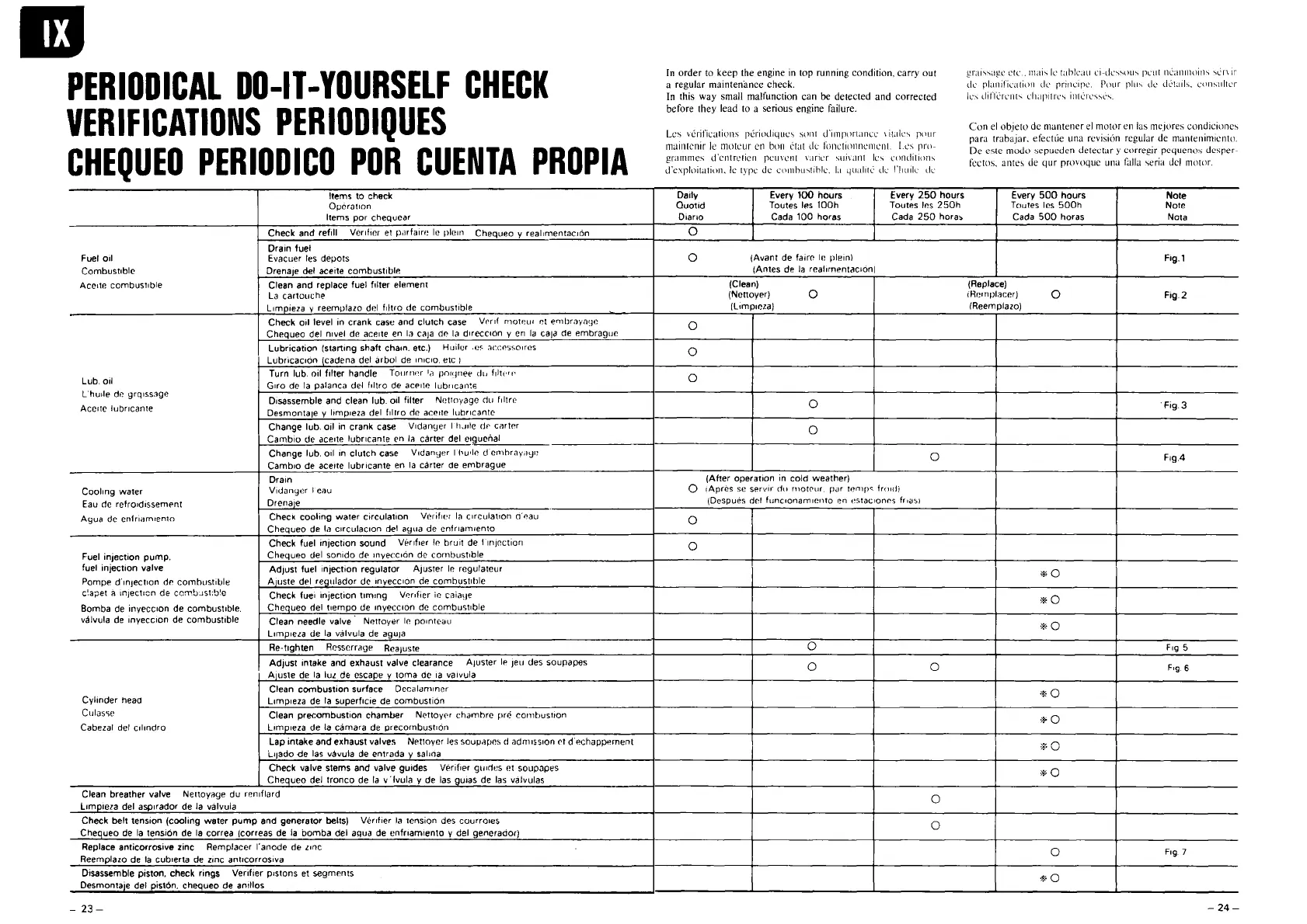 Yanmar YSB8 - Scheduled Maintenance Checks
