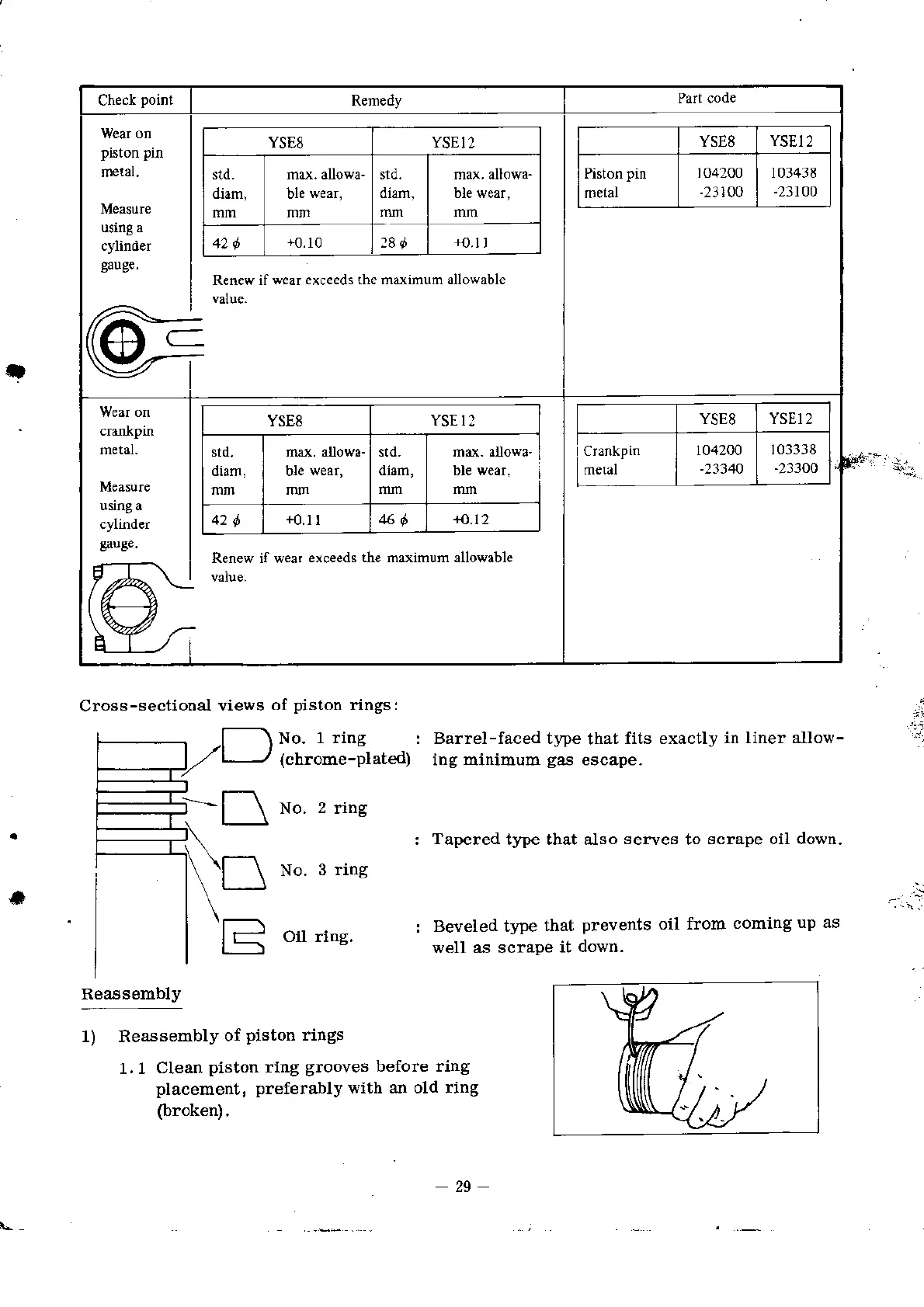 Yanmar YSE12 - Croas-Sectional Views of Piston Rings