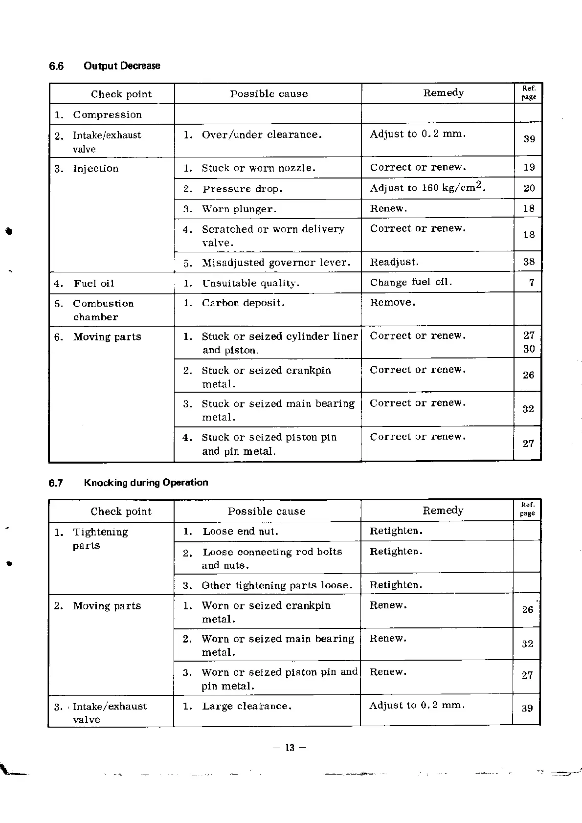 Yanmar YSE8 - Yanmar YSE Troubleshooting: Output Decrease